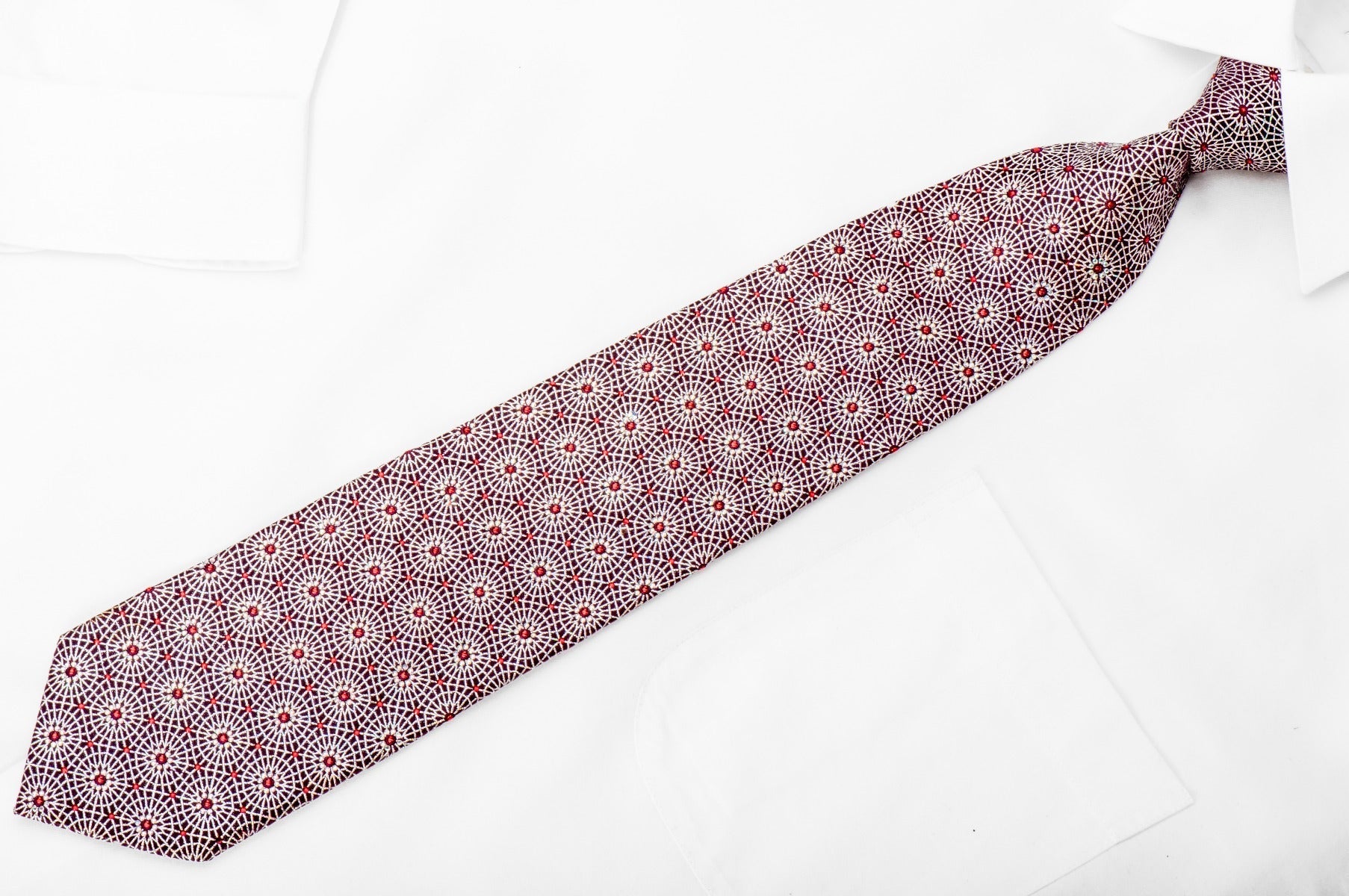 Gravata rhinestone masculina linda feita à mão da seda de melhor qualidade e projetada pela marca de topo Daks. Apresentando um belo design de Trellis arabesco prateado na borgonha, brilhando com Strass Vermelho e brilhos prateados.