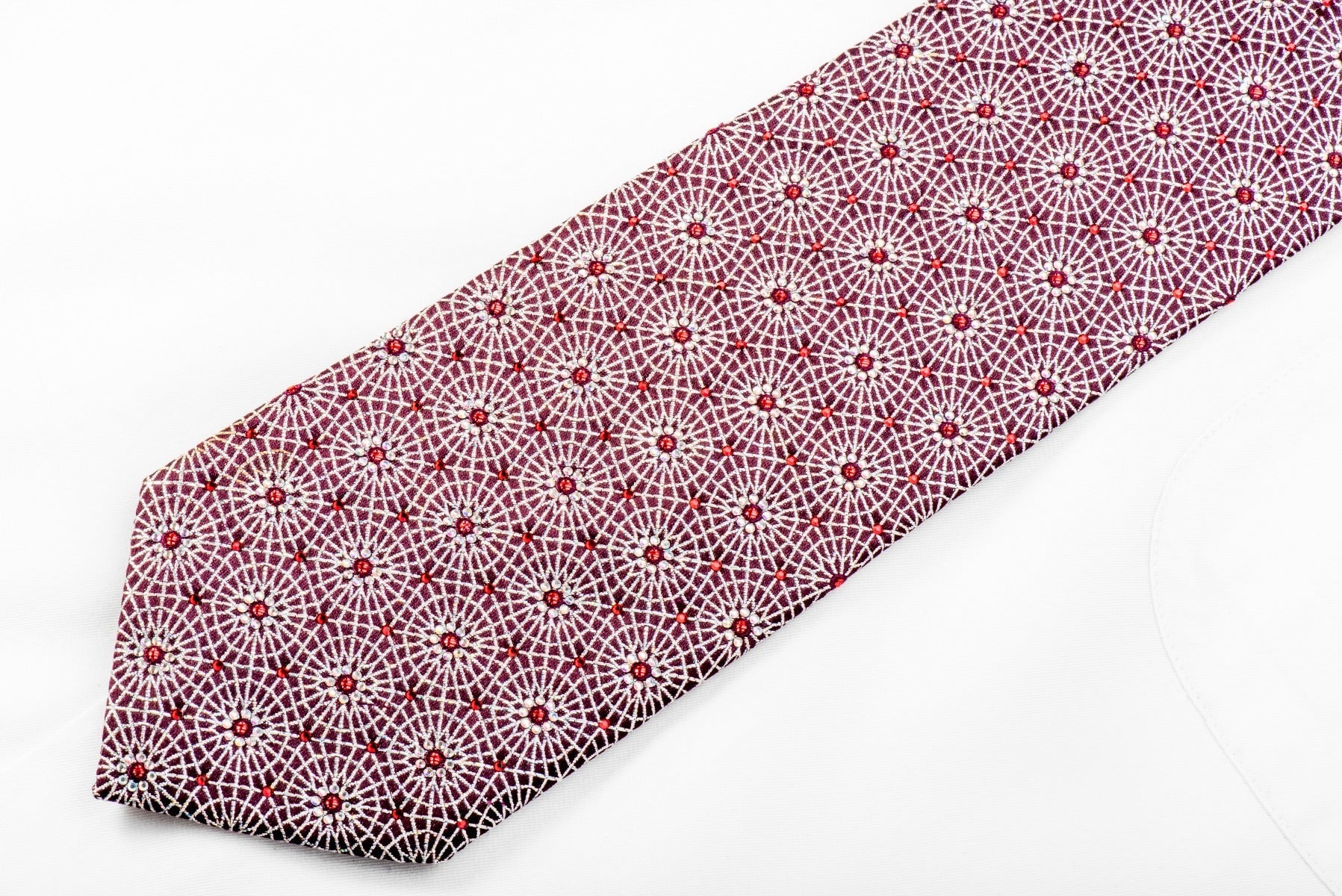 Material - Seda Design - Treliça Cor - Borgonha, Vermelho, Prata Comprimento - Clássico (57 pol.-60 pol.)(145 cm-153 cm) Largura - Clássico (3 1/4 pol.-3 3/4 pol.)(8 cm-9,5 cm) Recursos especiais - Strass vermelhos, brilhos prateados Fornecedor - Daks
