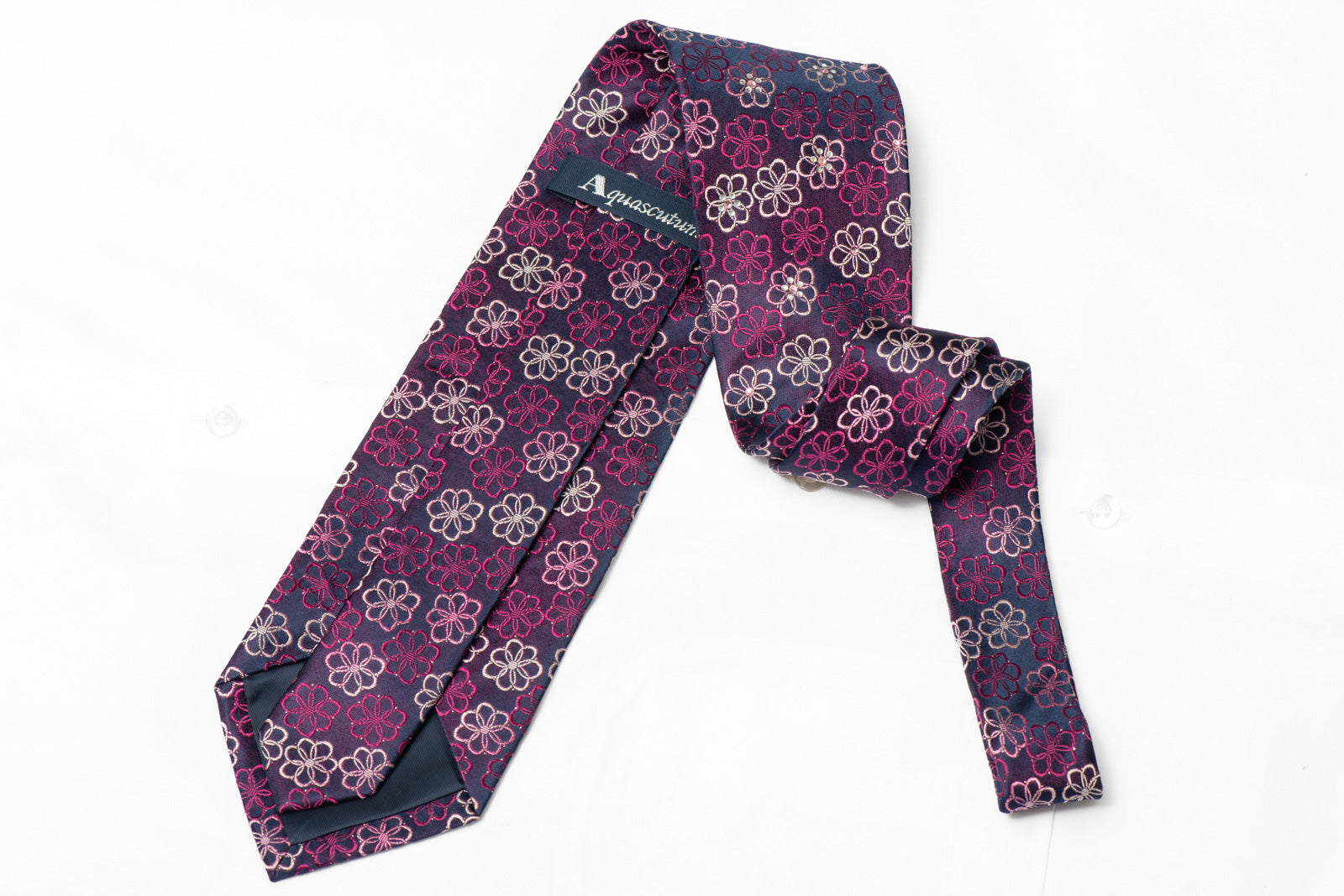 Material - Silk Design - Floral Cor - Blue, Purple, Pink Comprimento - Classic (48 in.-60 in.)(145cm-153 cm) Largura - Classic (3 1/4 in.-3 3/4 in.)(8 cm-9.5 cm) Recursos especiais - Rhinetones, Silver Sparkles Fornecedor - Aquascutum