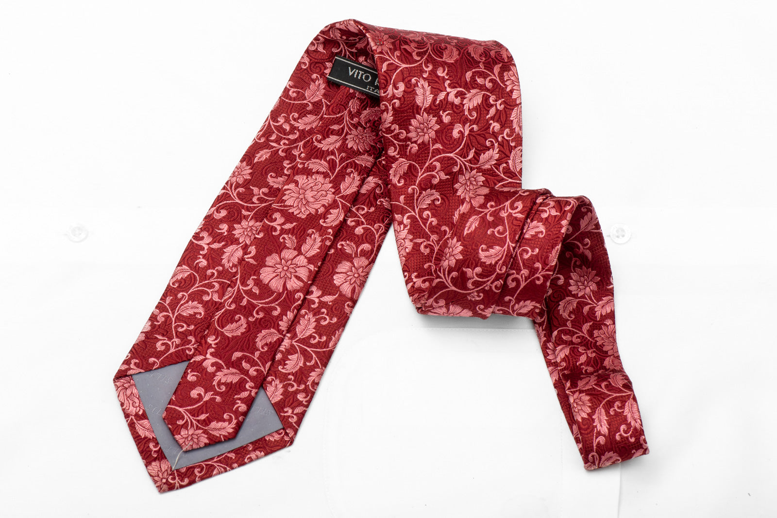 Material - Silk Design - Floral Cor - Red Comprimento - Classic (48 in.-60 in.)(145cm-153 cm) Largura - Classic (3 1/4 in.-3 3/4 in.)(8 cm-9.5 cm) Recursos especiais - Rhinestones Fornecedor - Vito Rufolo