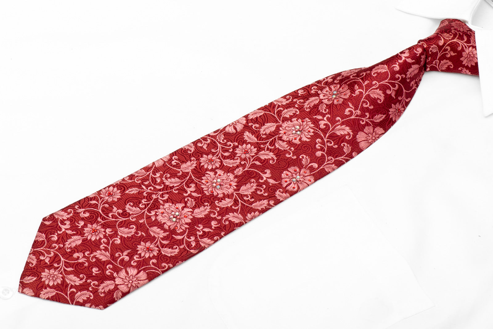 Elevate your formal wardrobe with this striking dark red silk tie, adorned with delicate floral patterns and sparkling crystal rhinestones. The luxurious silk fabric drapes beautifully while the eye-catching embellishments add sophistication and personality to any suit. Perfect for weddings, special occasions, or when you want to make a confident statement. This versatile accessory transforms an ordinary outfit into something truly memorable.