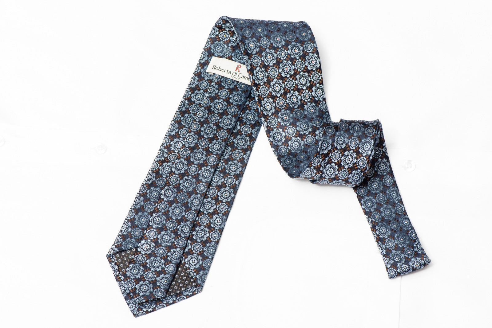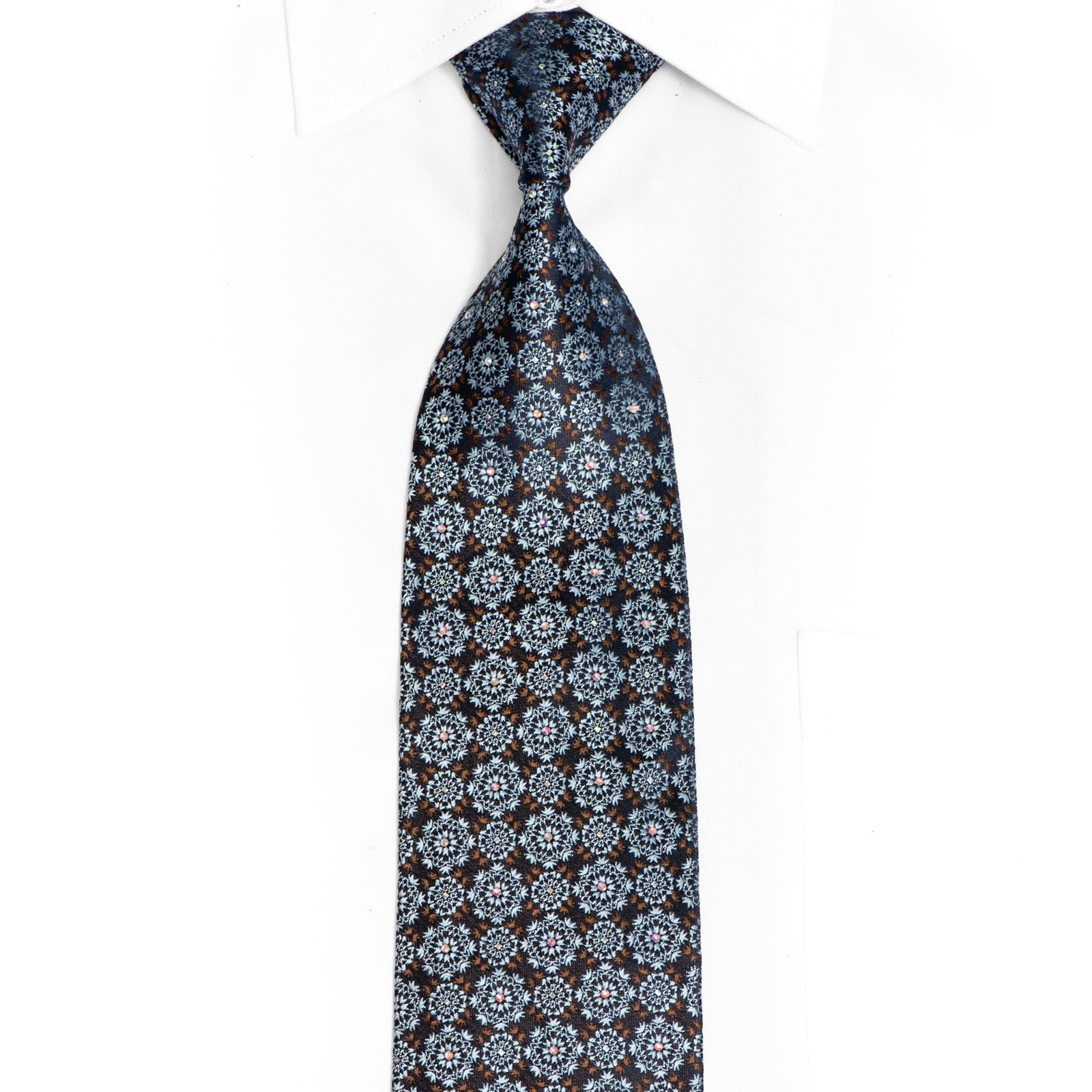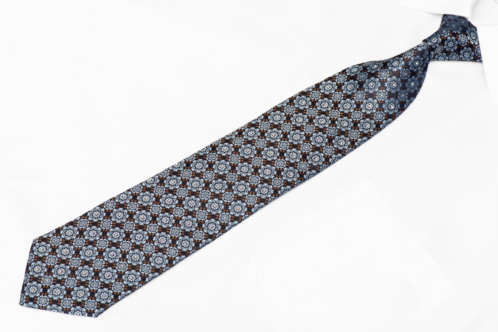 Geometric On NAvy Rhinestone Tie With Metallic Silver