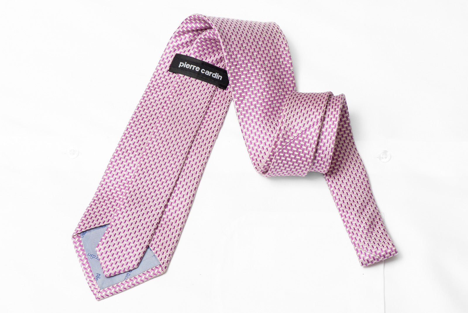 Material - Silk Design - Geometric Cor - Pink, Mauve Comprimento - Classic (48 in.-60 in.)(145cm-153 cm) Largura - Classic (3 1/4 in.-3 3/4 in.)(8 cm-9.5 cm) Recursos especiais - Rhinestones, Silver Sparkles Fornecedor - Pierre Cardin