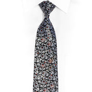 Silver Floral On Black Rhinestone Silk Tie With Red
