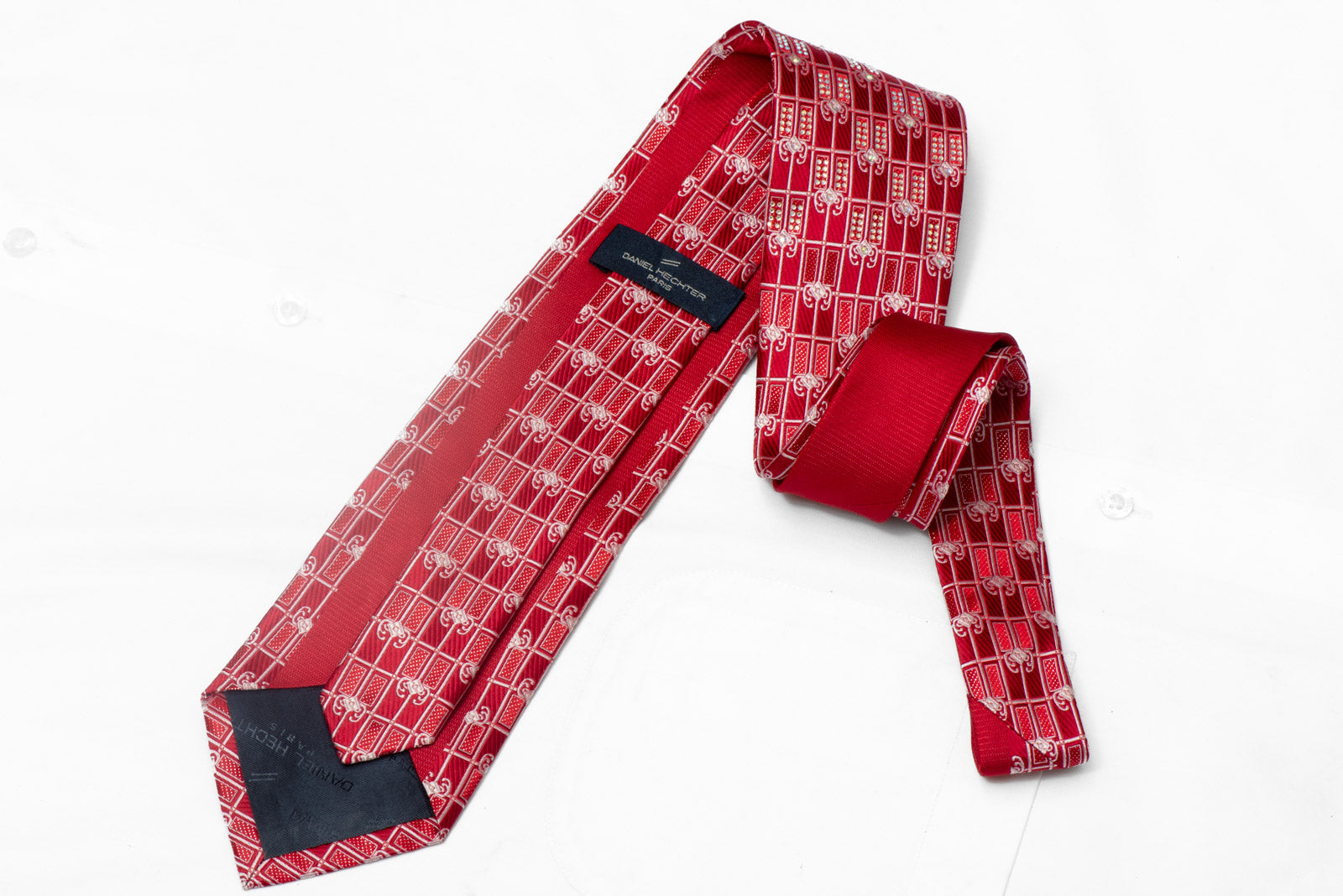 Material - Silk Design - Trellis, Cartiuache Cor - Red, Silver Comprimento - Classic (48 in.-60 in.)(145cm-153 cm) Largura - Classic (3 1/4 in)( 8.5cm ) Recursos especiais - Rhinestones, Silver Sparkles Fornecedor - Daniel Hechter