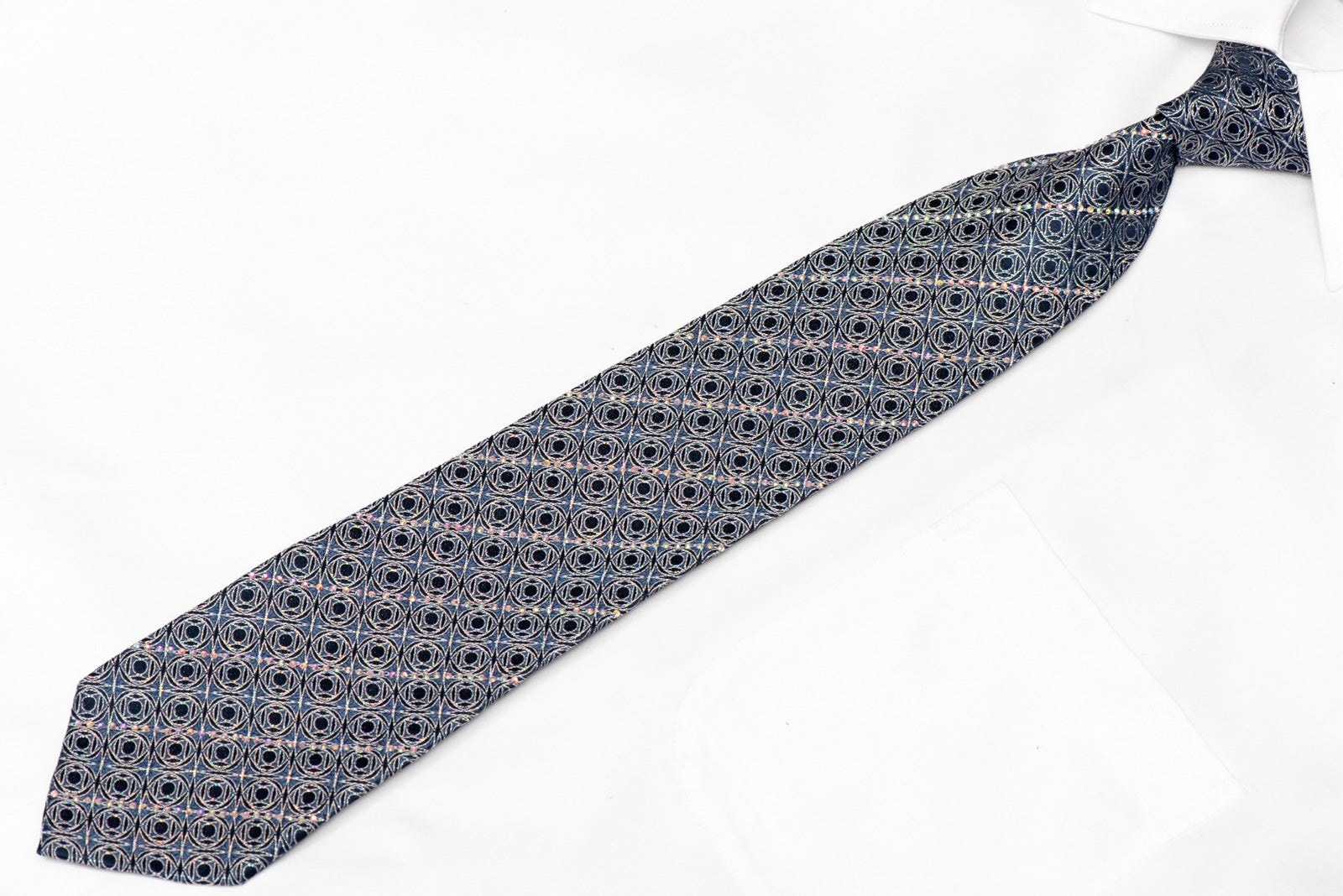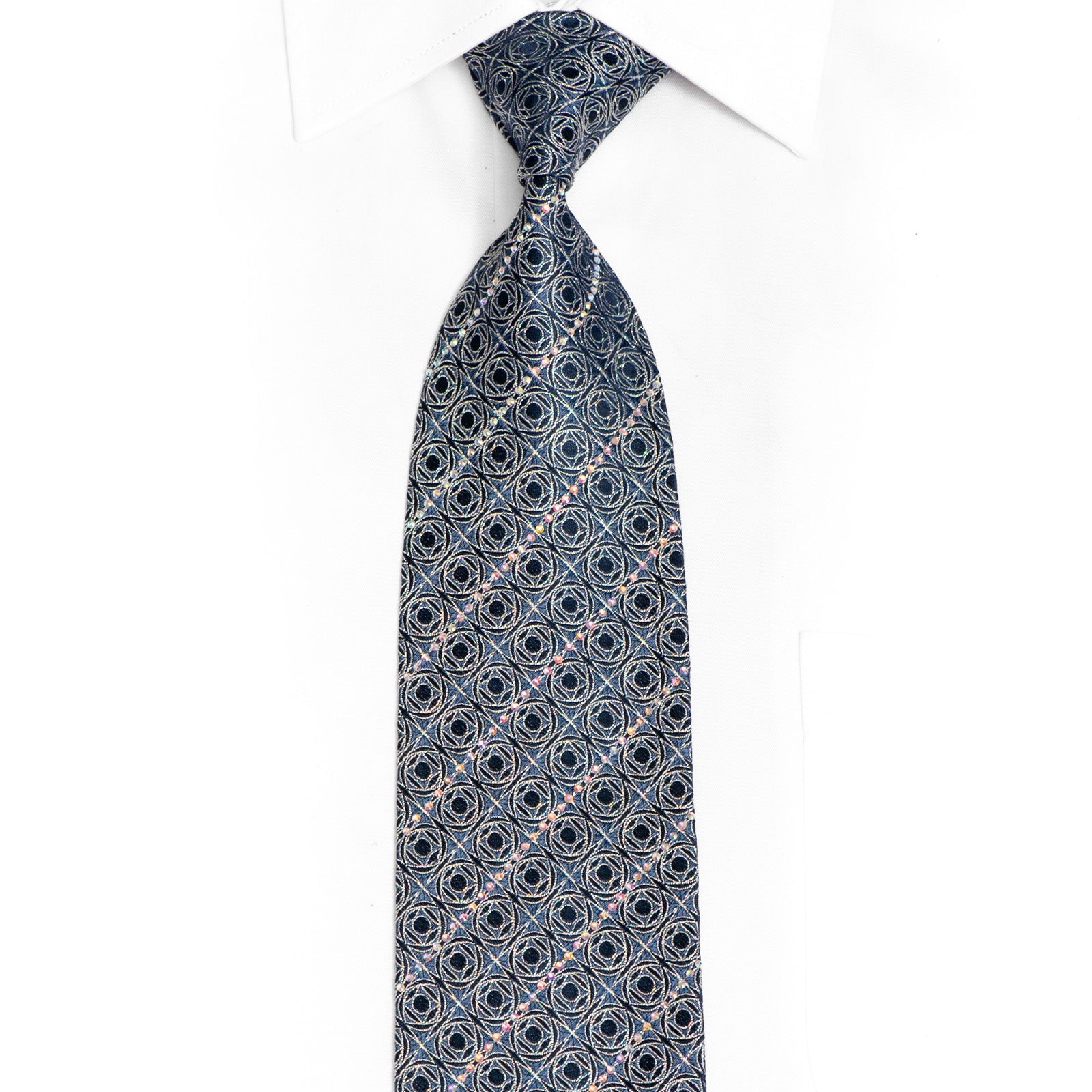 This navy silk tie features a silver trellis pattern adorned with sparkling rhinestones, adding a refined touch of elegance.