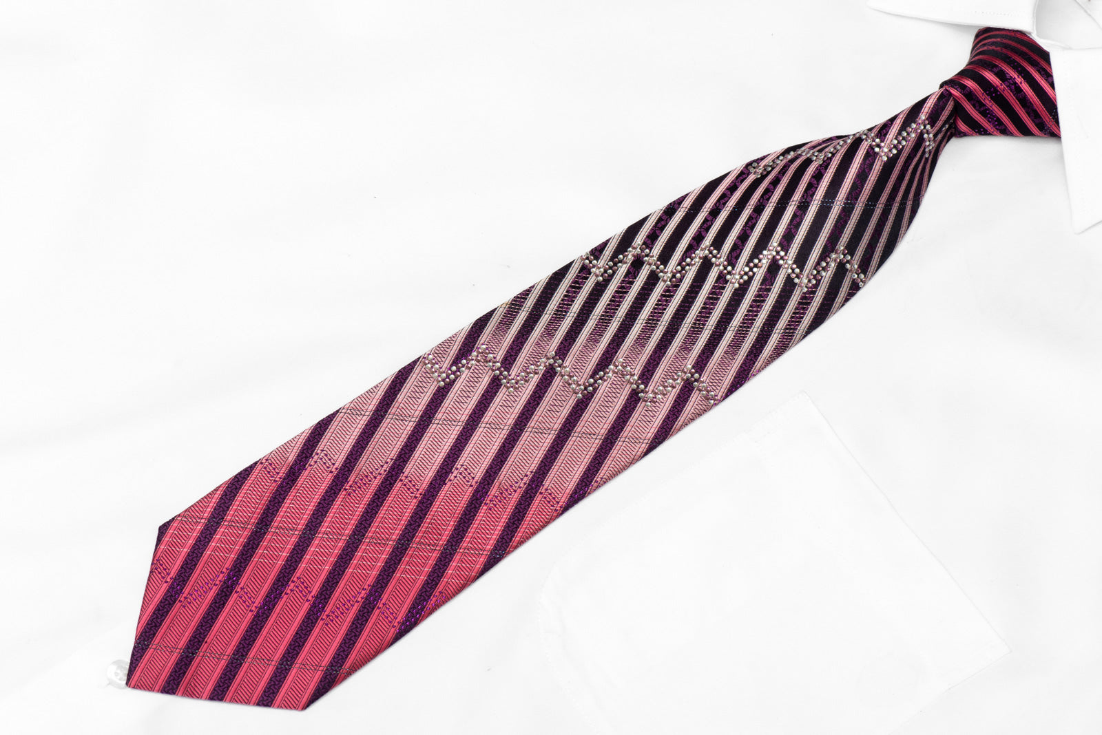 This silk tie features violet stripes set against a deep purple background, enhanced with silver rhinestone sparkles for a refined and stylish touch.