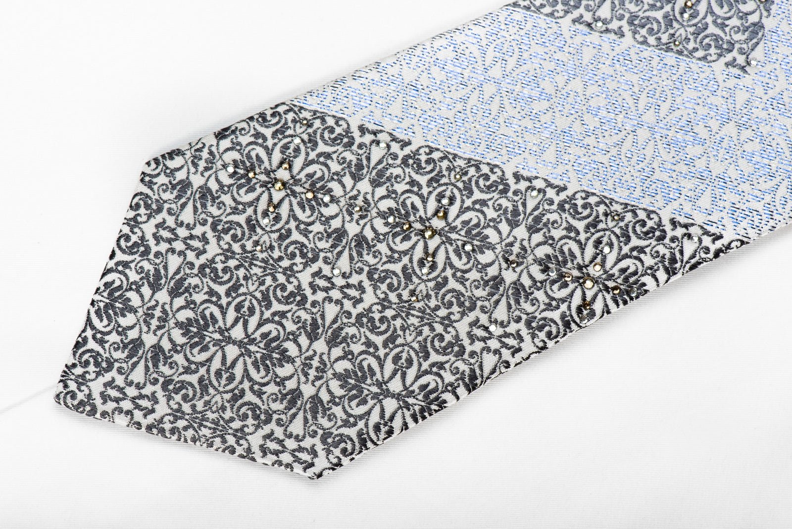 Material - Seda Design - Cartela Cor - Preto, azul, prata, branco Comprimento - Clássico (57 pol.-60 pol.)(145 cm-153 cm) Largura - Clássico (3 1/4 pol.-3 3/4 pol.)(8 cm-9,5 cm) Recursos especiais - Brilhos azuis, strass de cristal, strass cinza Fornecedor - Avalon