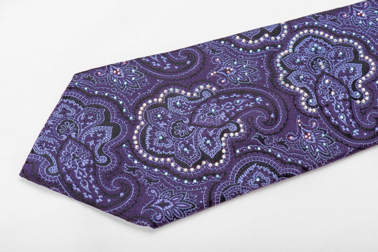 Material - Seda Design - Paisley Cor - Azul, malva, roxo Comprimento - Clássico (57 pol.-60 pol.)(145 cm-153 cm) Largura - Clássico (3 1/4 pol.-3 3/4 pol.)(8 cm-9,5 cm) Recursos especiais - Strass AB, Strass Azul, Strass Rosa Fornecedor - Bruno Baffi