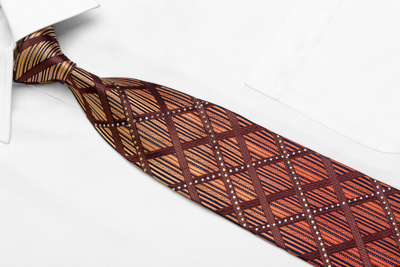 Material - Seda Design - Listrado Cor - Laranja, Azul Comprimento - Clássico (57 pol.-60 pol.)(145 cm-153 cm) Largura - Clássico (3 1/4 pol.-3 3/4 pol.)(8 cm-9,5 cm) Recursos especiais - Strass, brilhos prateados Fornecedor - Elle Homme