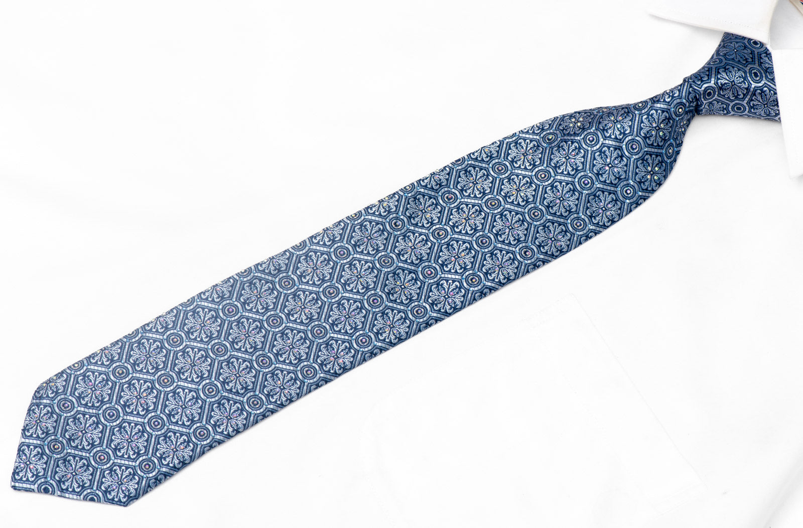 Add a touch of sparkle to your attire with our Blue Rhinestone Silk Necktie, featuring a charming Trellis & Cartouche design.