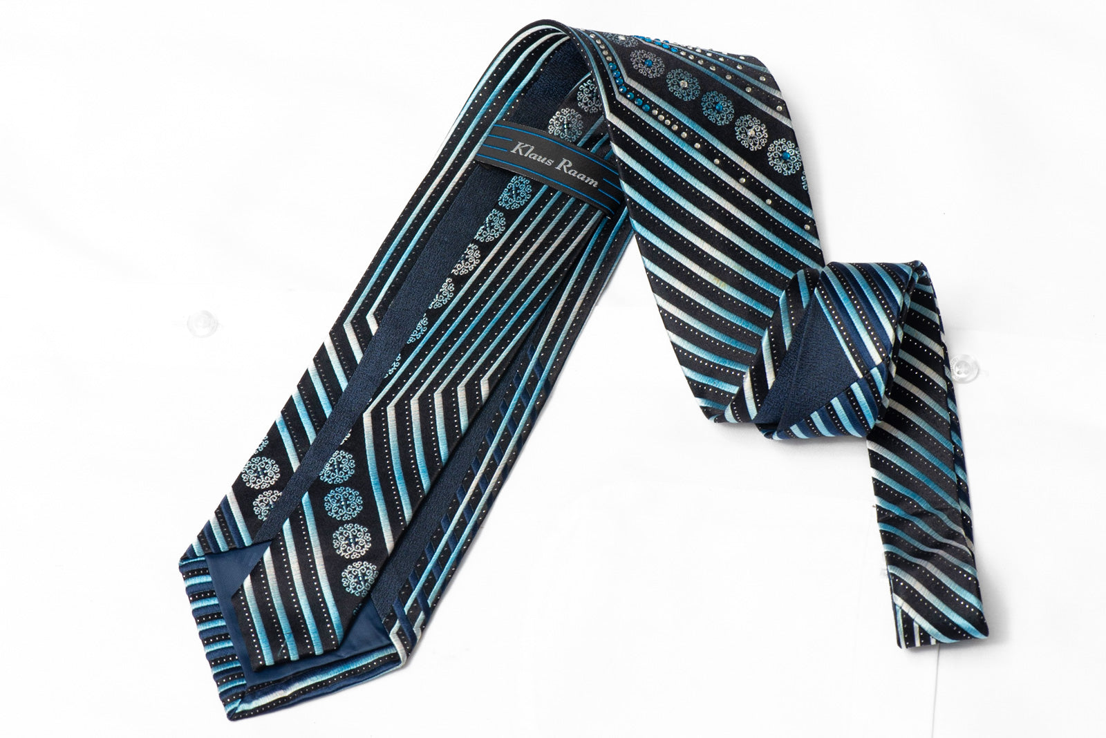 Blue Striped On Navy Rhinestone Tie With Silver Sparkles
