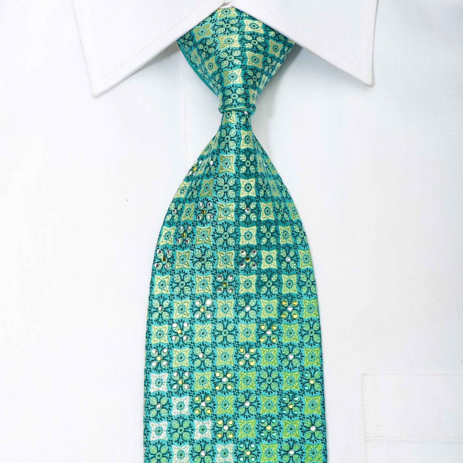 Material - Seda Design - Cartela Cor - Azul, Verde, Turquesa Comprimento - Clássico (57 pol.-60 pol.)(145 cm-153 cm) Largura - Clássico (3 1/4 pol.-3 3/4 pol.)(8 cm-9,5 cm) Recursos especiais - Strass de cristal, brilhos prateados Fornecedor - San-Dee
