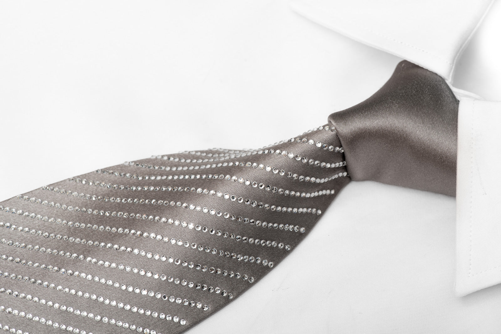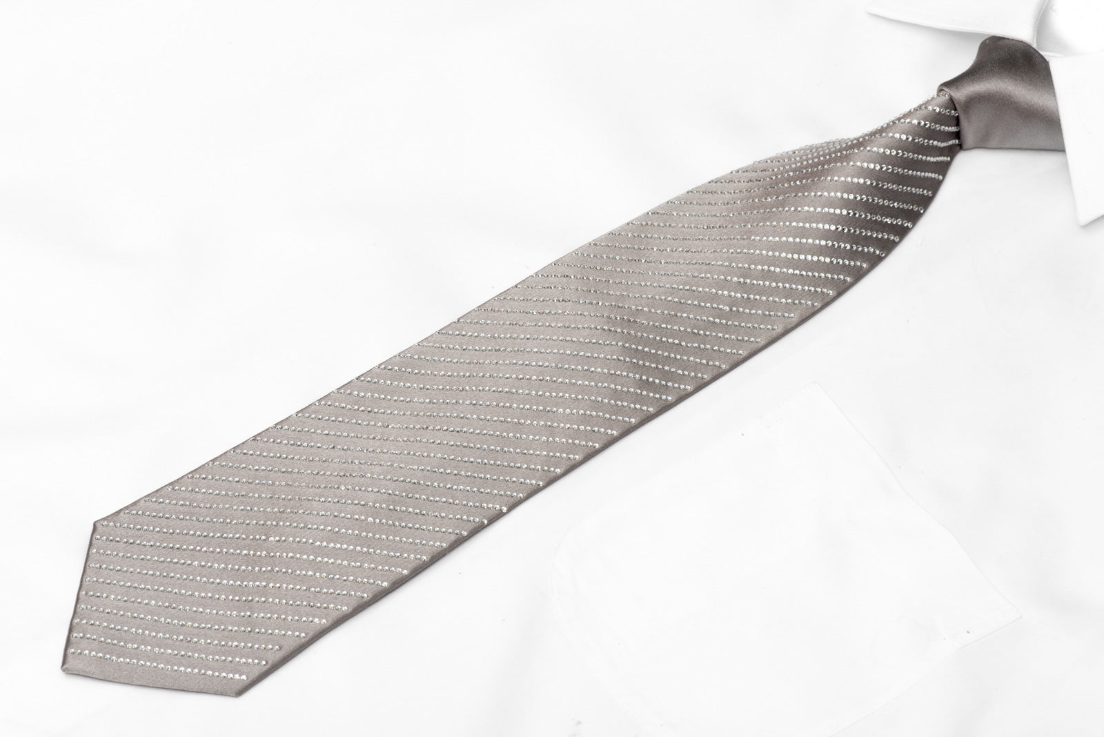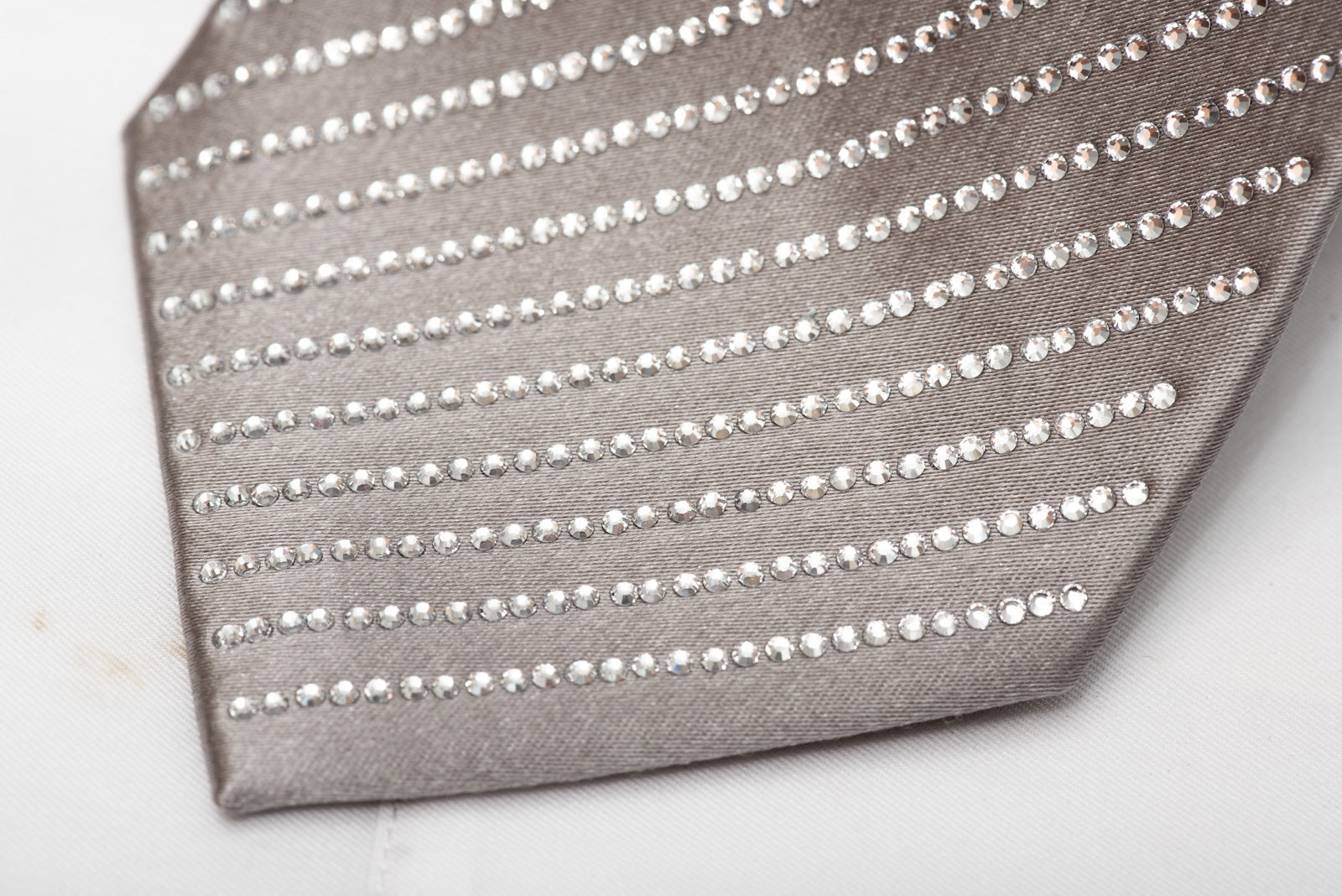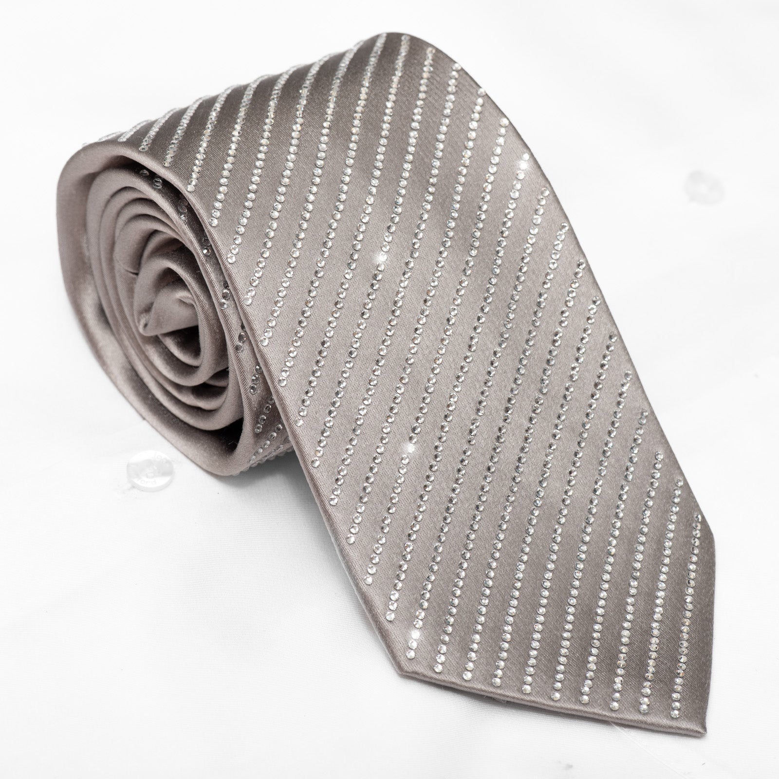 Material - SilkDesign - StripedColor - SilverLength - Classic (48 in.-60 in.)(145cm-153 cm)Width - Classic (3 1/4 in.-3 3/4 in.)(8 cm-9.5 cm)Special Features - Rhinestones