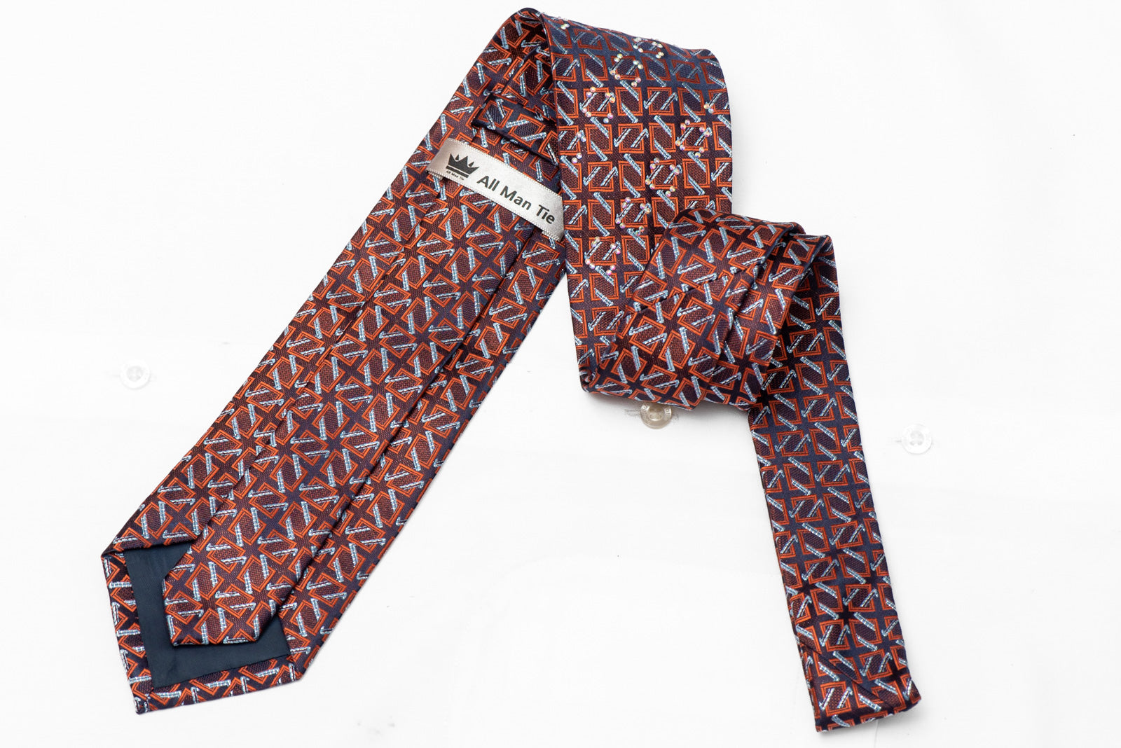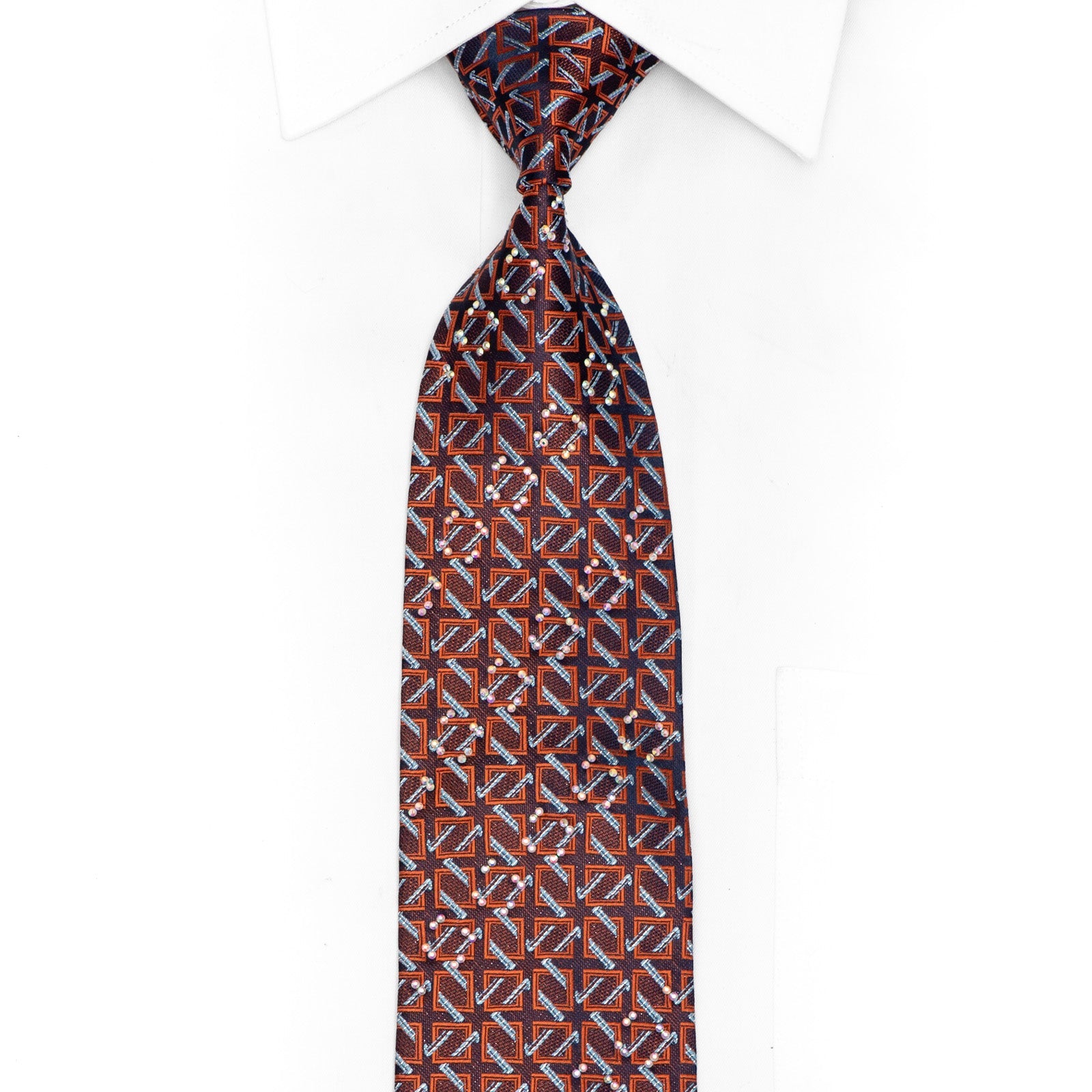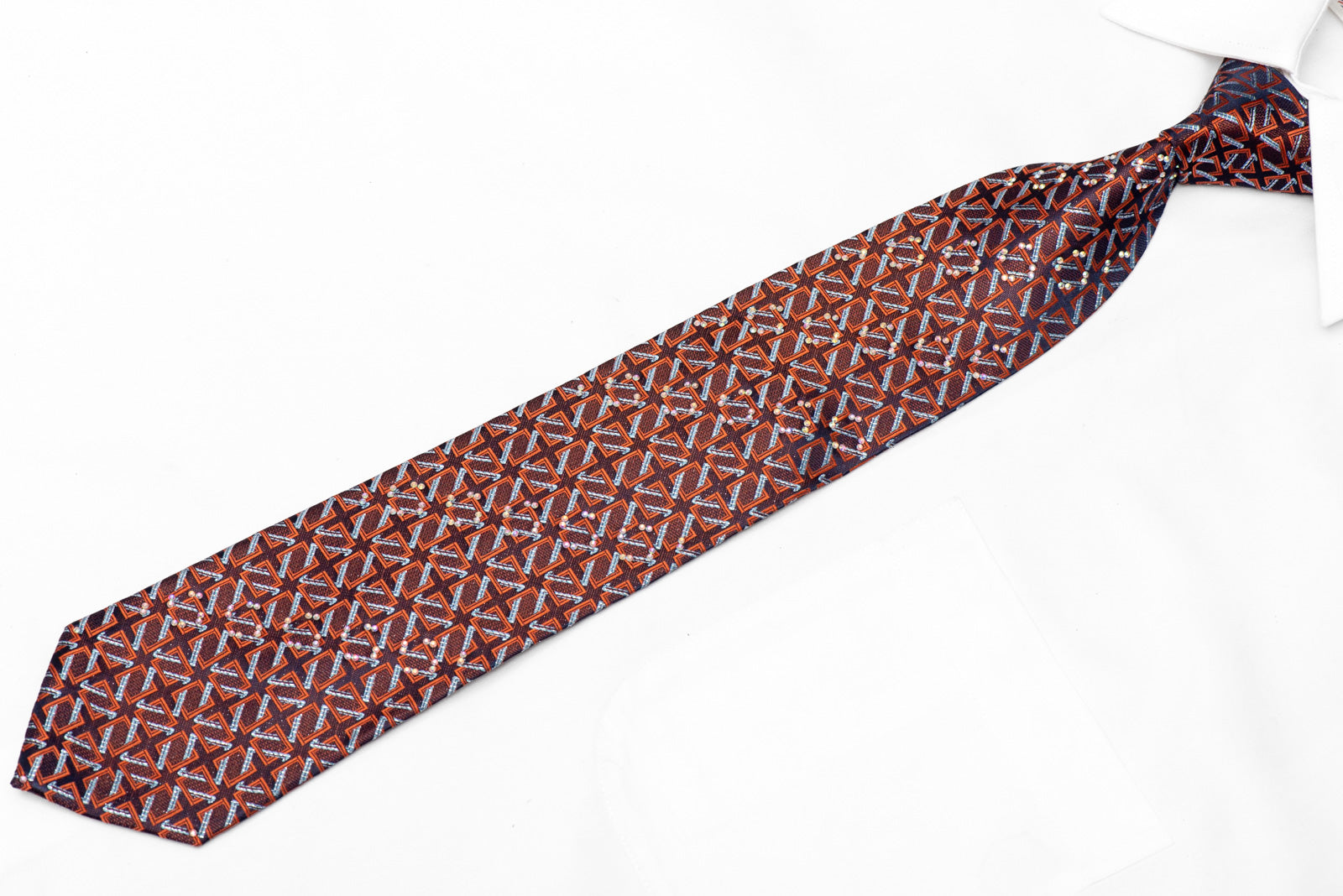 Material - SilkDesign - GeometricColor - Orange, Silver, BlueLength - Classic (48 in.-60 in.)(145cm-153 cm)Width - Classic (3 1/4 in.-3 3/4 in.)(8 cm-9.5 cm)Special Features - Rhinestones, Silver Sparkles