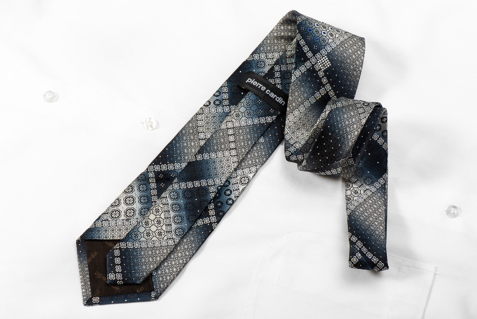 Pierre Cardin Men’s Crystal Silk Necktie Silver Black Navy