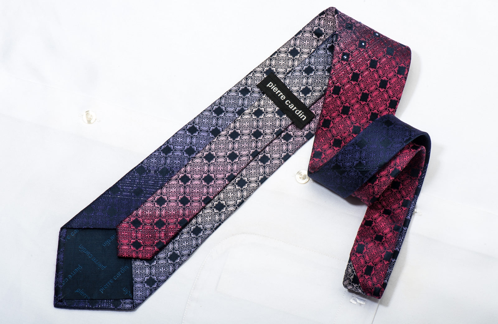 Pierre Cardin Men’s Silk Tie Purple Cartouche On Navy