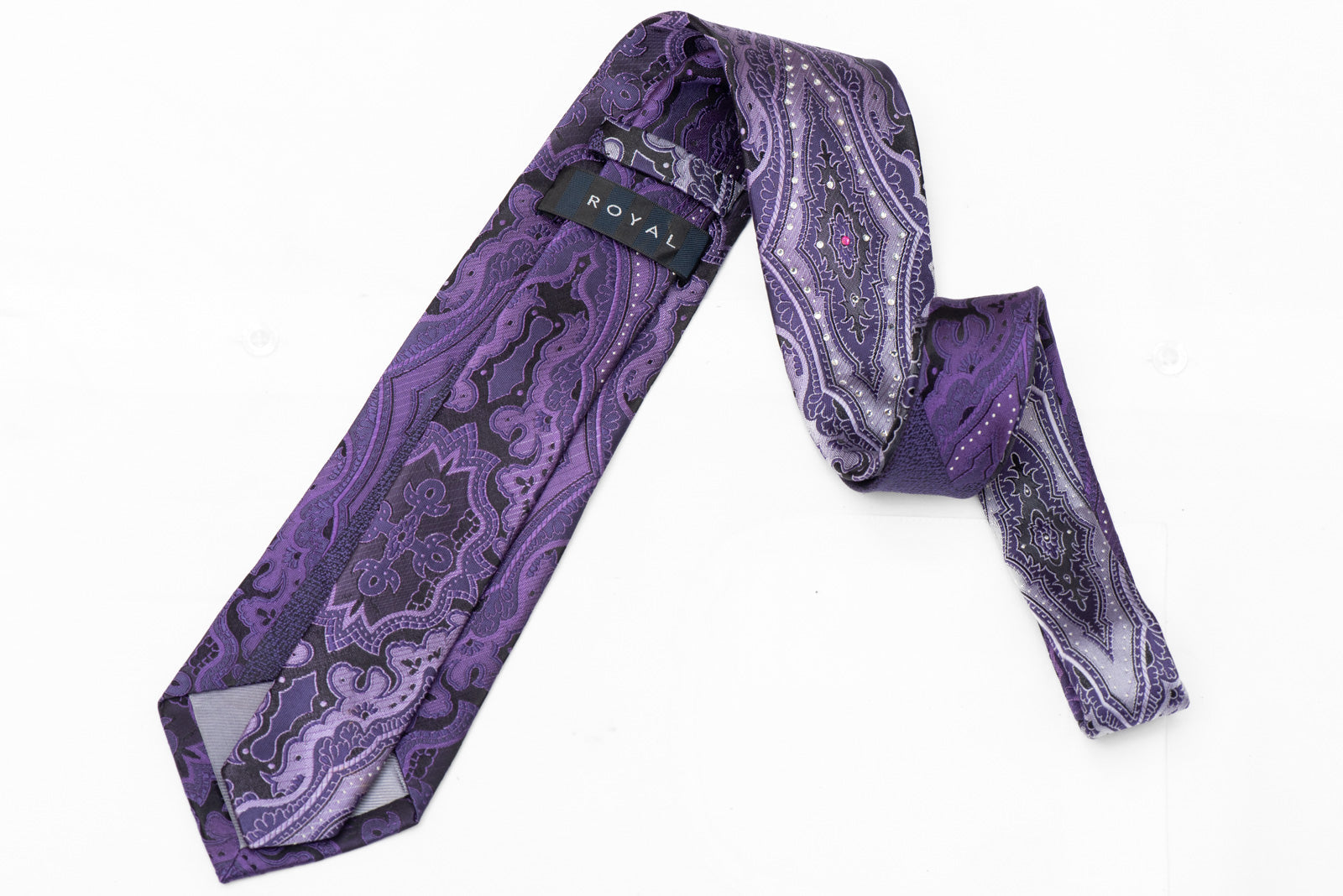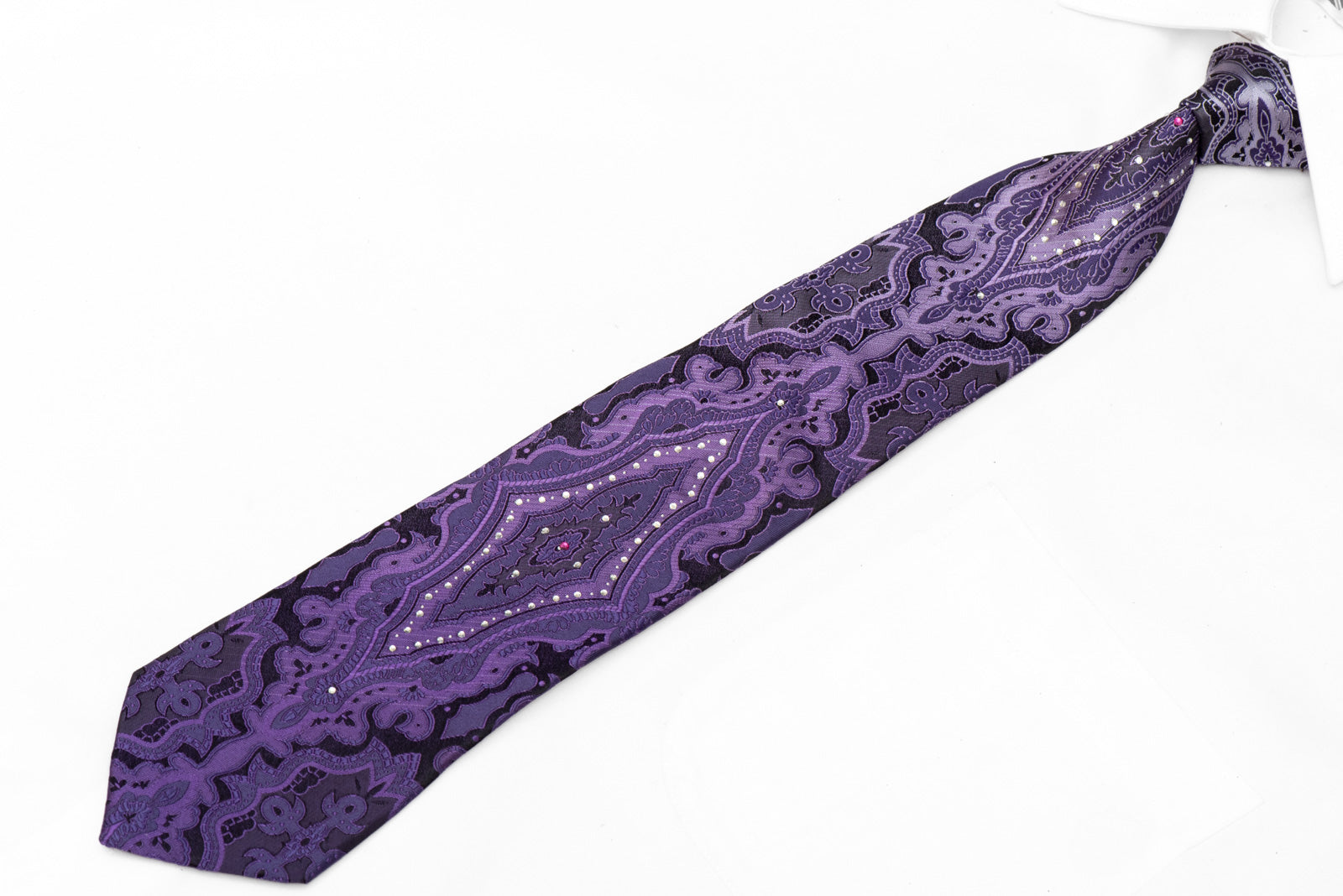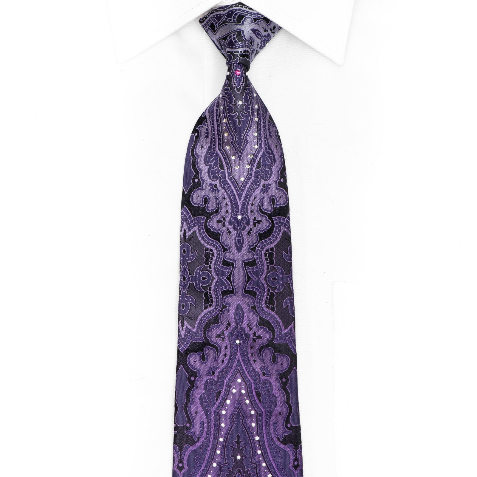 Material - SilkDesign - DamaskColor - Purple, BlackLength - Classic (48 in.-60 in.)(145cm-153 cm)Width - Classic (3 1/4 in.-3 3/4 in.)(8 cm-9.5 cm)Special Features - Rhinestones, Silver Sparkles