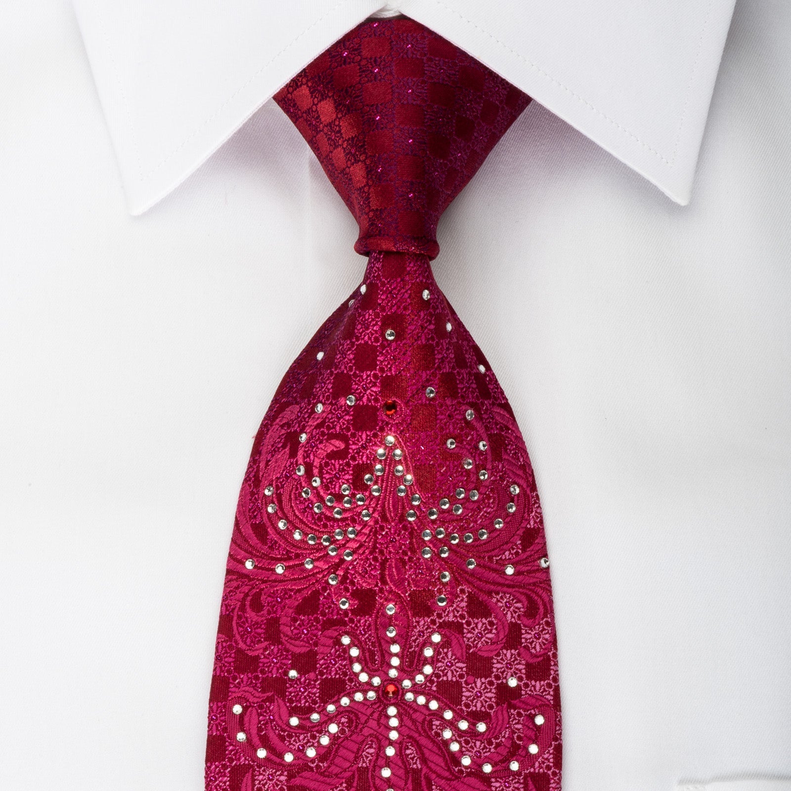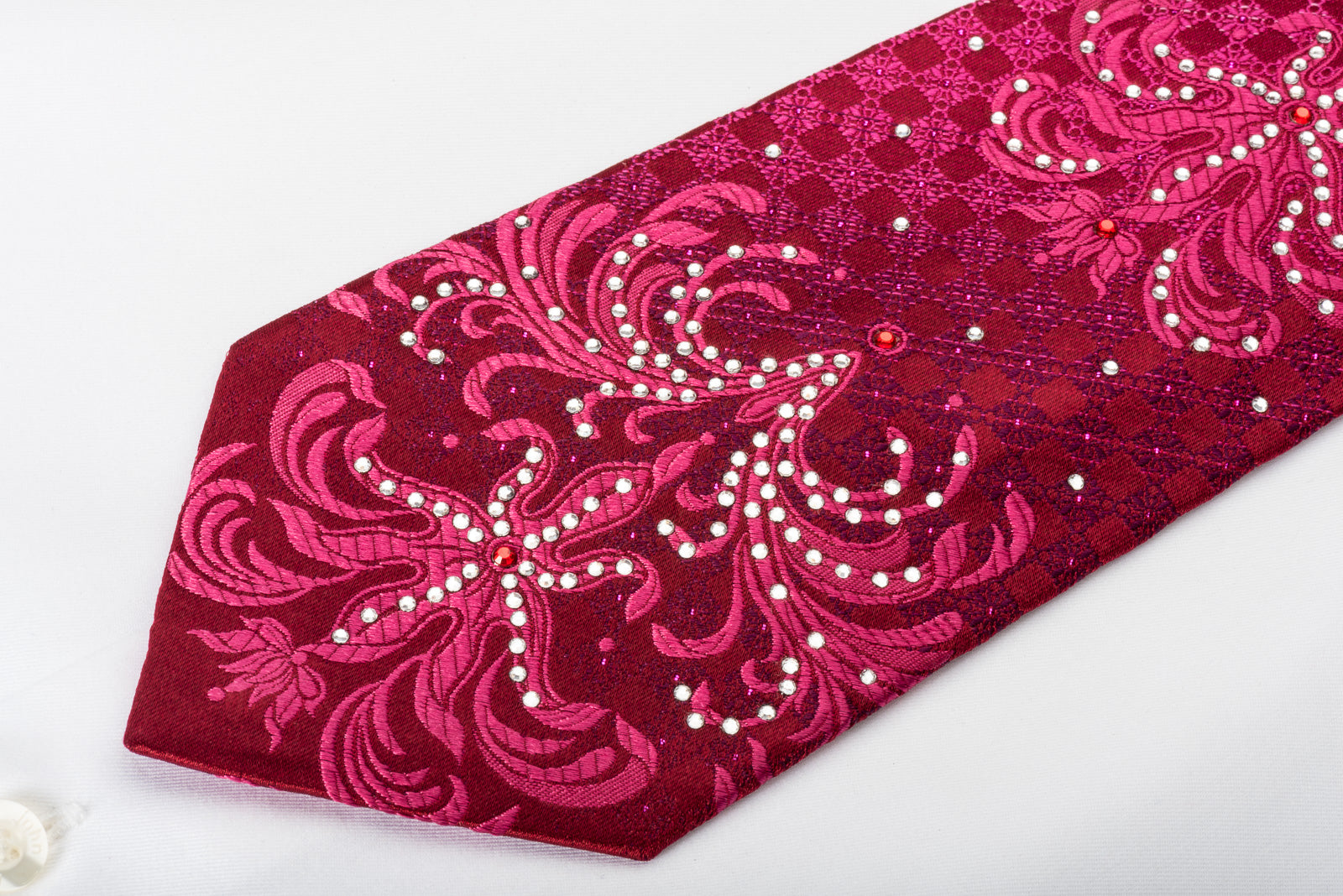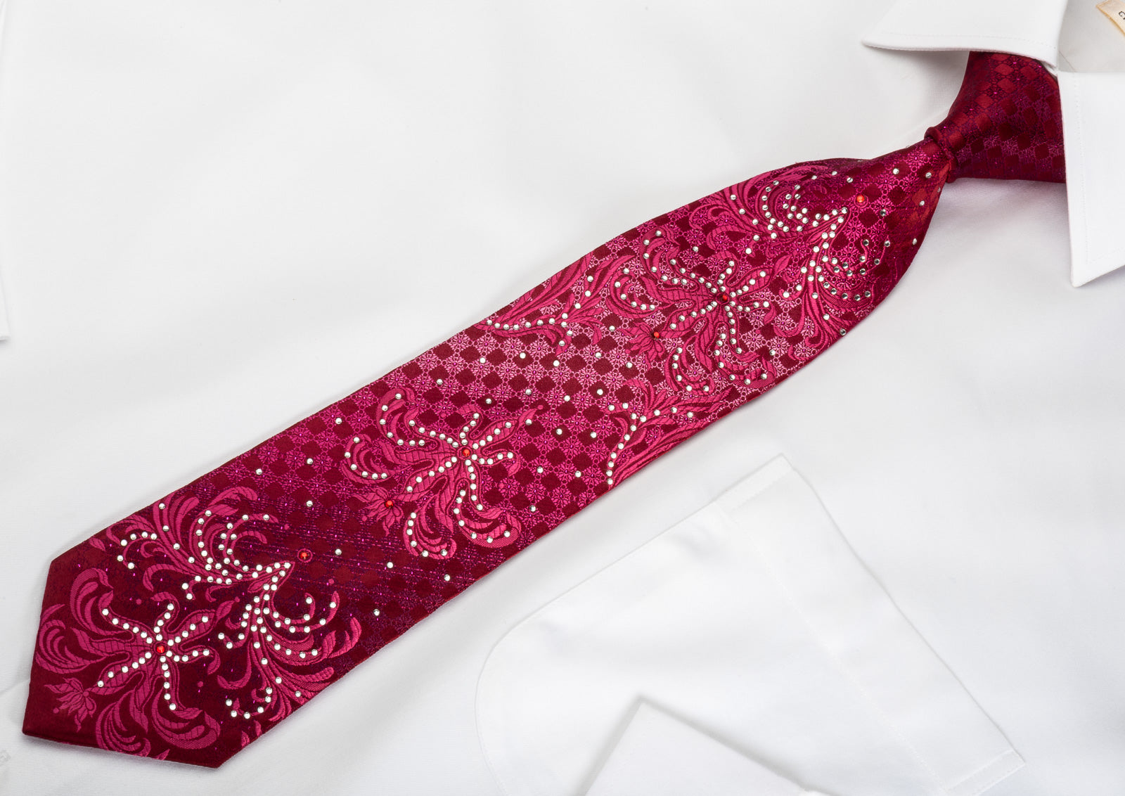 Material - SilkDesign - DamaskColor - Burgundy, Purple, RedLength - Classic (57 in.-60 in.)(145 cm-153 cm)Width - Classic (3 1/4 in.-3 3/4 in.)(8 cm-9.5 cm)Special Features - Red Rhinestones, White Rhinestones