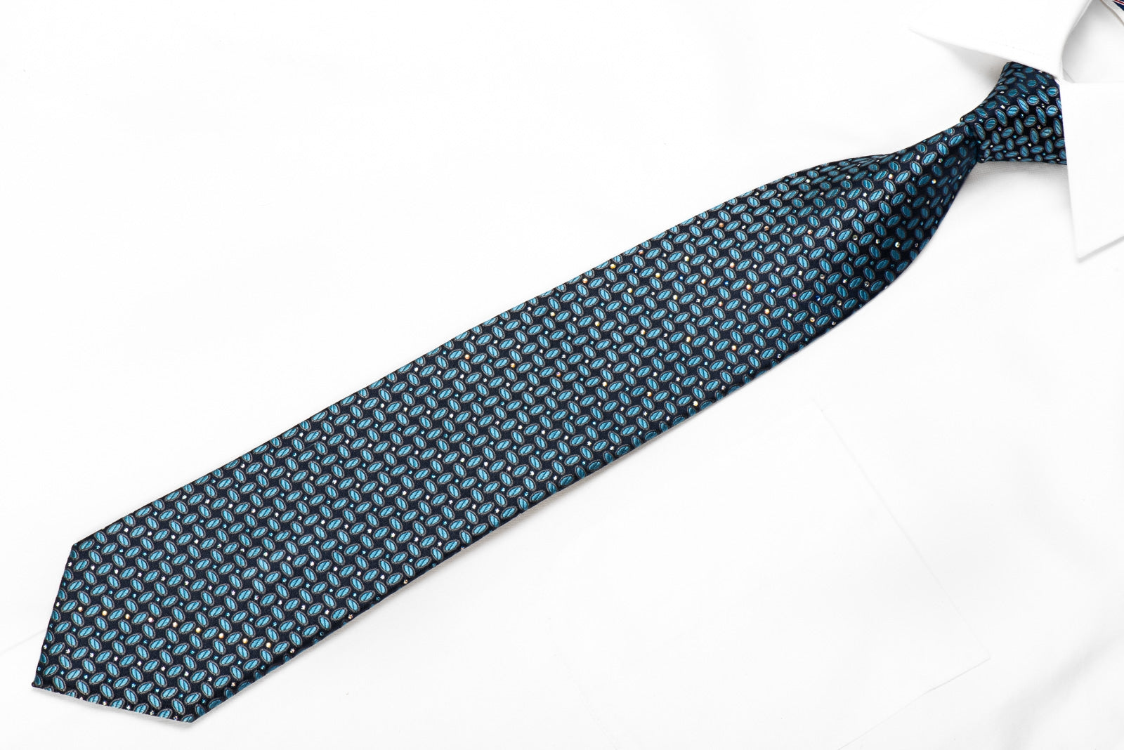 Stylish men's crystal necktie perfect for every occasion handmade from the finest quality silk and designed by top brand name Rogatis. Presenting an elegant woven Geometric design on blue, sparkling with crystal Rhinestones with metallic blue, silver sparkles.