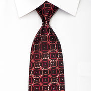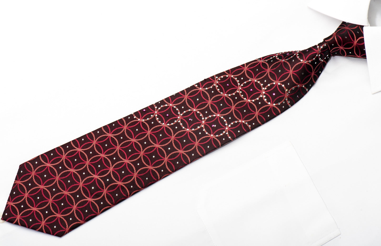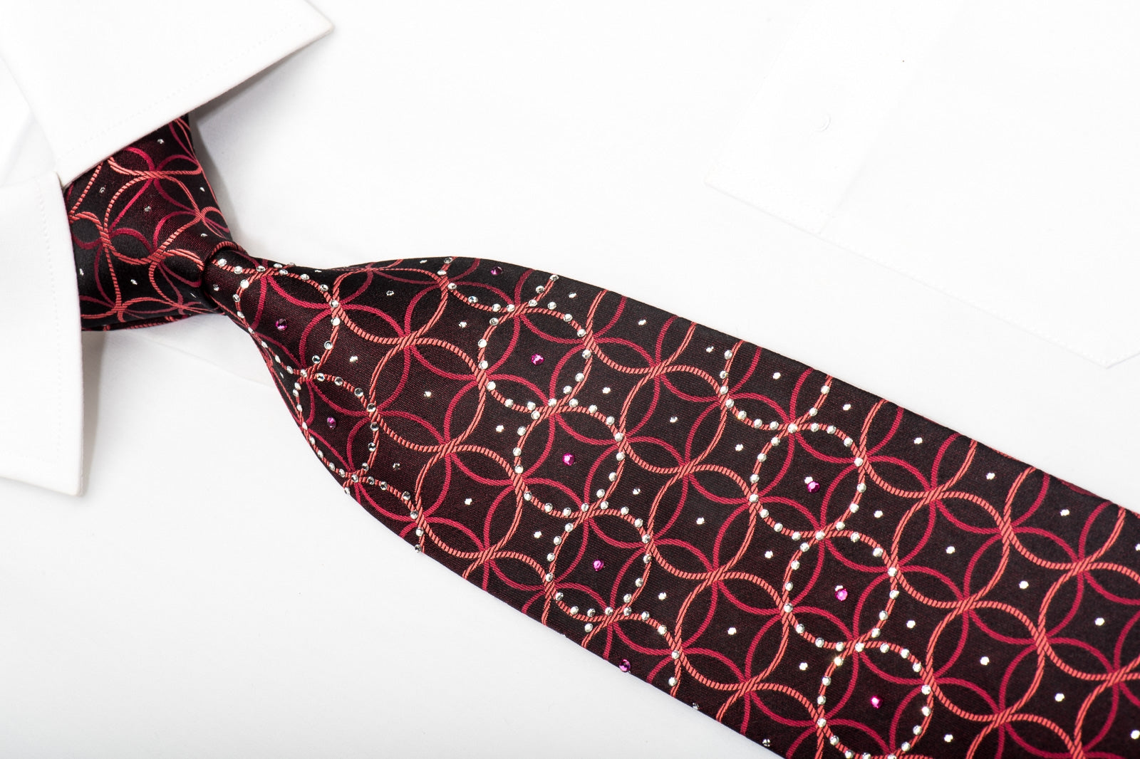 Stylish men's silk necktie perfect for every occasion handmade from the finest quality silk and designed by top brand name Rogatis. Presenting an elegant design with orange interlocking circles on black orange woven silk, sparkling with clear white, orange crystal Rhinestones and silver sparkles.
