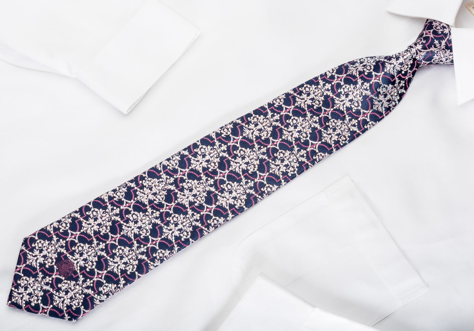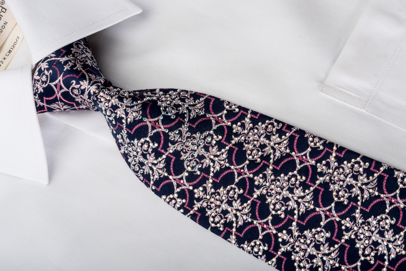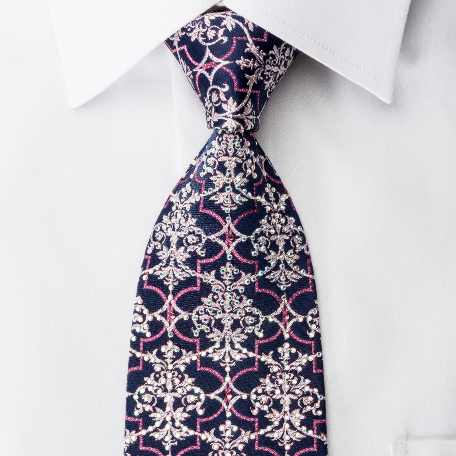 Material - SilkDesign - DamaskColor - Blue, Pink, SilverLength - Classic (57 in.-60 in.)(145 cm-153 cm)Width - Classic (3 1/4 in.-3 3/4 in.)(8 cm-9.5 cm)Special Features - Silver Sparkles, White Rhinestones