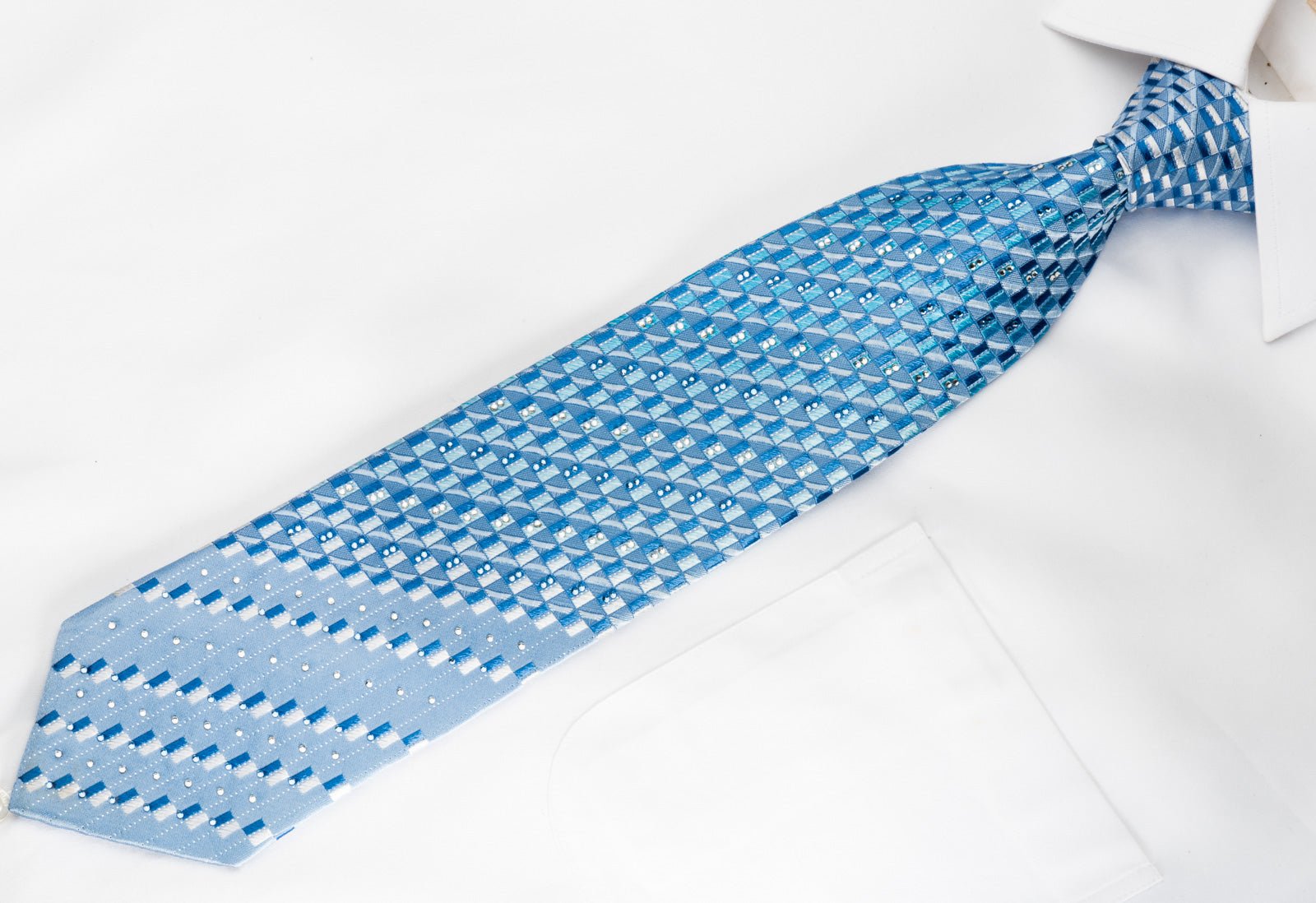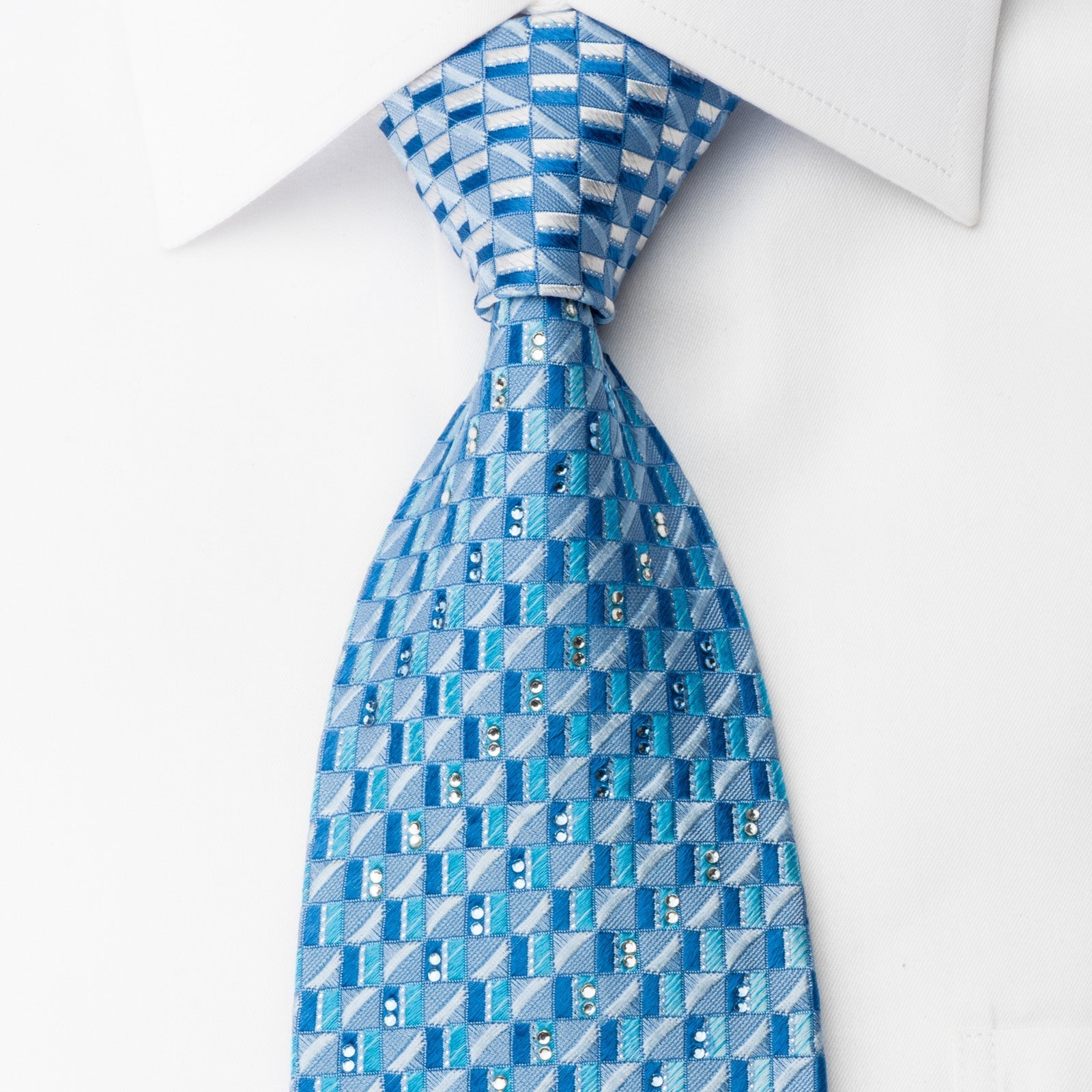 Material - SilkDesign - GeometricColor - BlueLength - Classic (57 in.-60 in.)(145 cm-153 cm)Width - Classic (3 1/4 in.-3 3/4 in.)(8 cm-9.5 cm)Special Features - Blue Rhinestones, Silver Sparkles, White Rhinestones