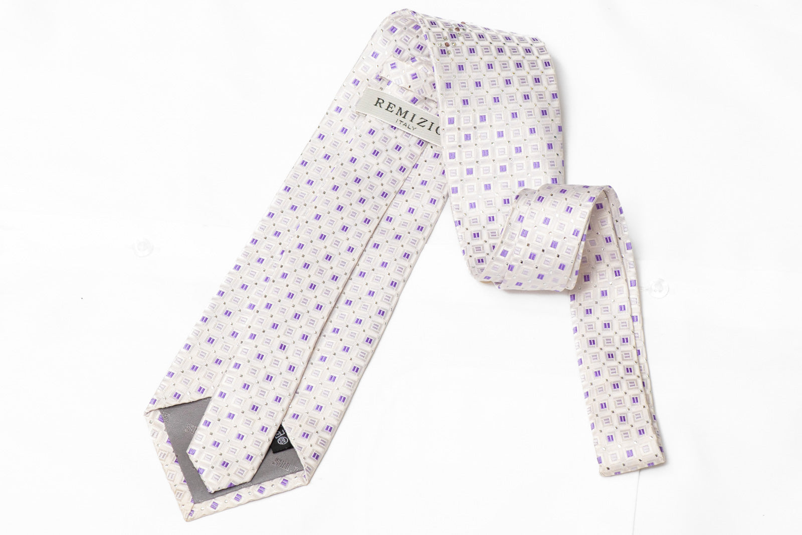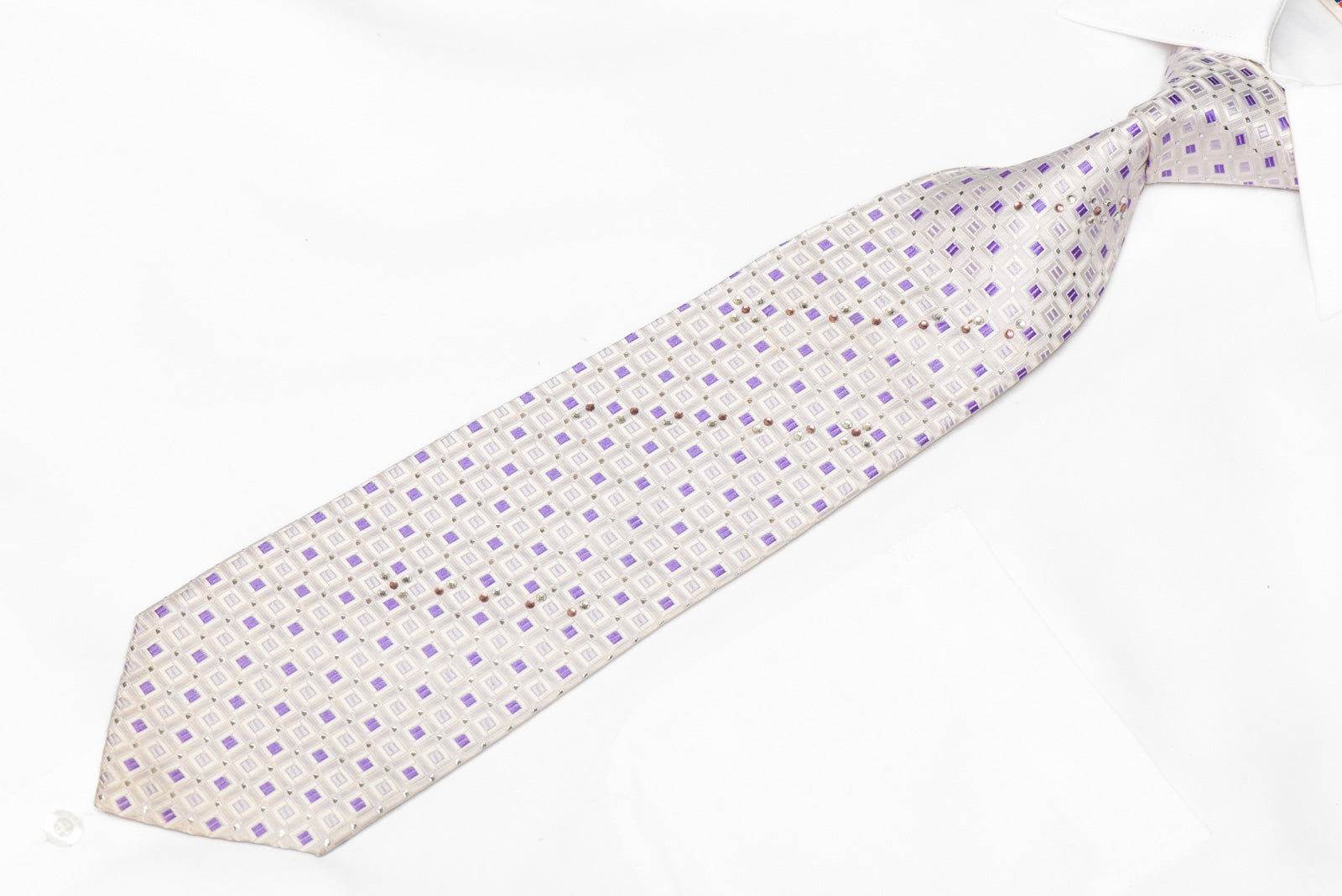 Material - SilkDesign - GeometricColor - White, PurpleLength - Classic (48 in.-60 in.)(145cm-153 cm)Width - Classic (3 1/4 in.-3 3/4 in.)(8 cm-9.5 cm)Special Features - Rhinestones, Silver Sparkles