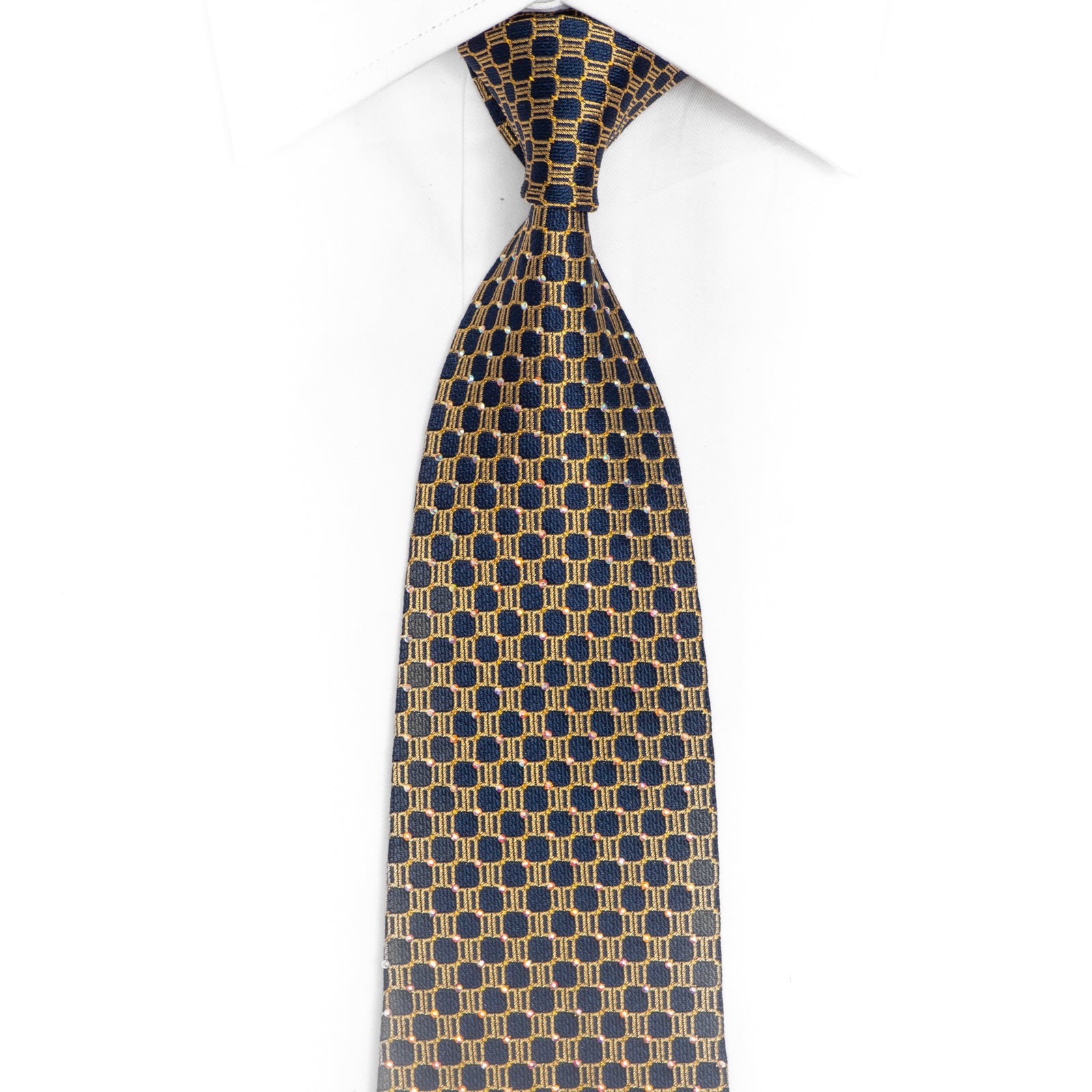 Material - Design - GeometricColor - Navy Blue, GoldLength - Classic (48 in.-60 in.)(145cm-153 cm)Width - Classic (3 1/4 in)( 8.5cm )Special Features - Rhinestones, Silver Sparkles