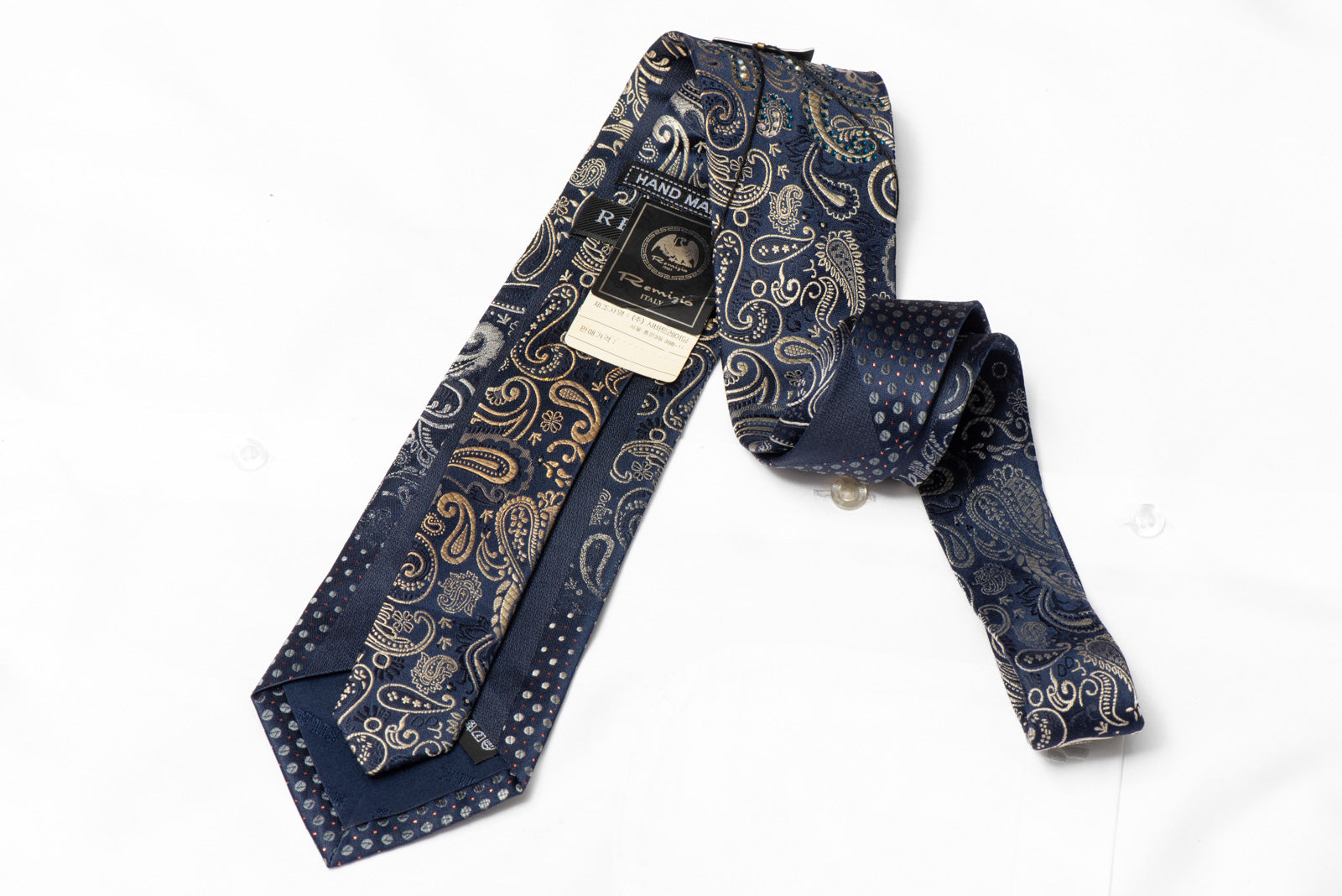 Material - SilkDesign - PaisleyColor - Gold, BlueLength - Classic (48 in.-60 in.)(145cm-153 cm)Width - Classic (3 1/4 in.-3 3/4 in.)(8 cm-9.5 cm)Special Features - Rhinestones, Silver Sparkles