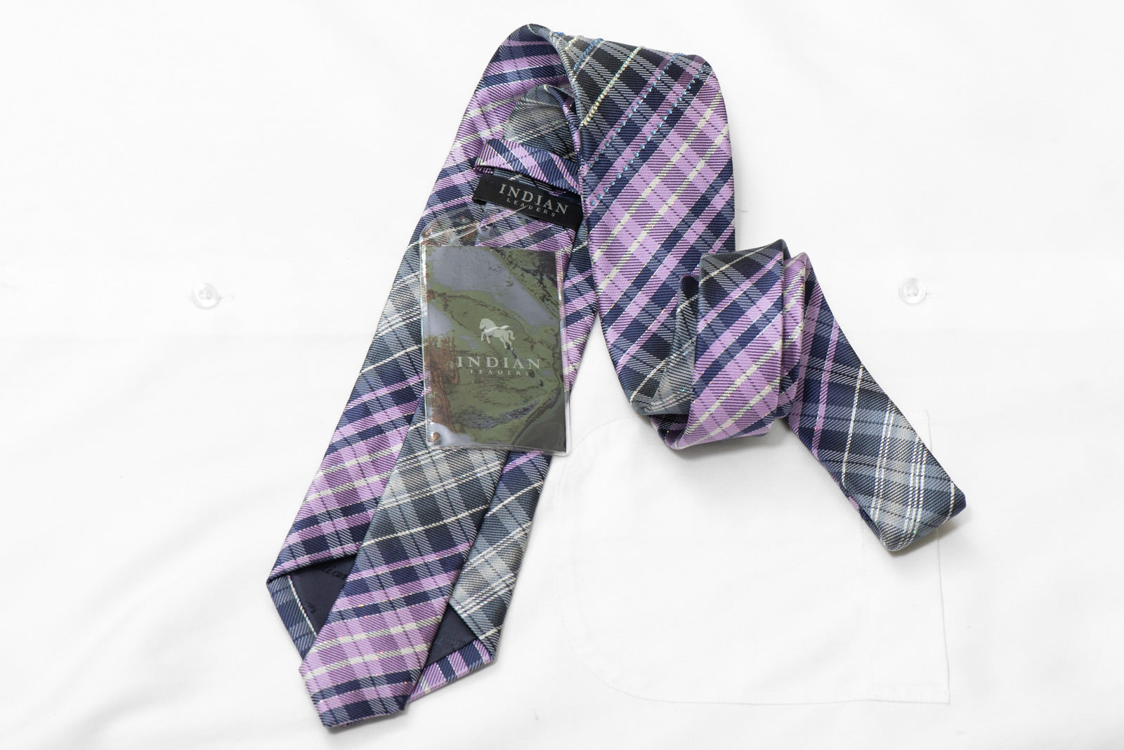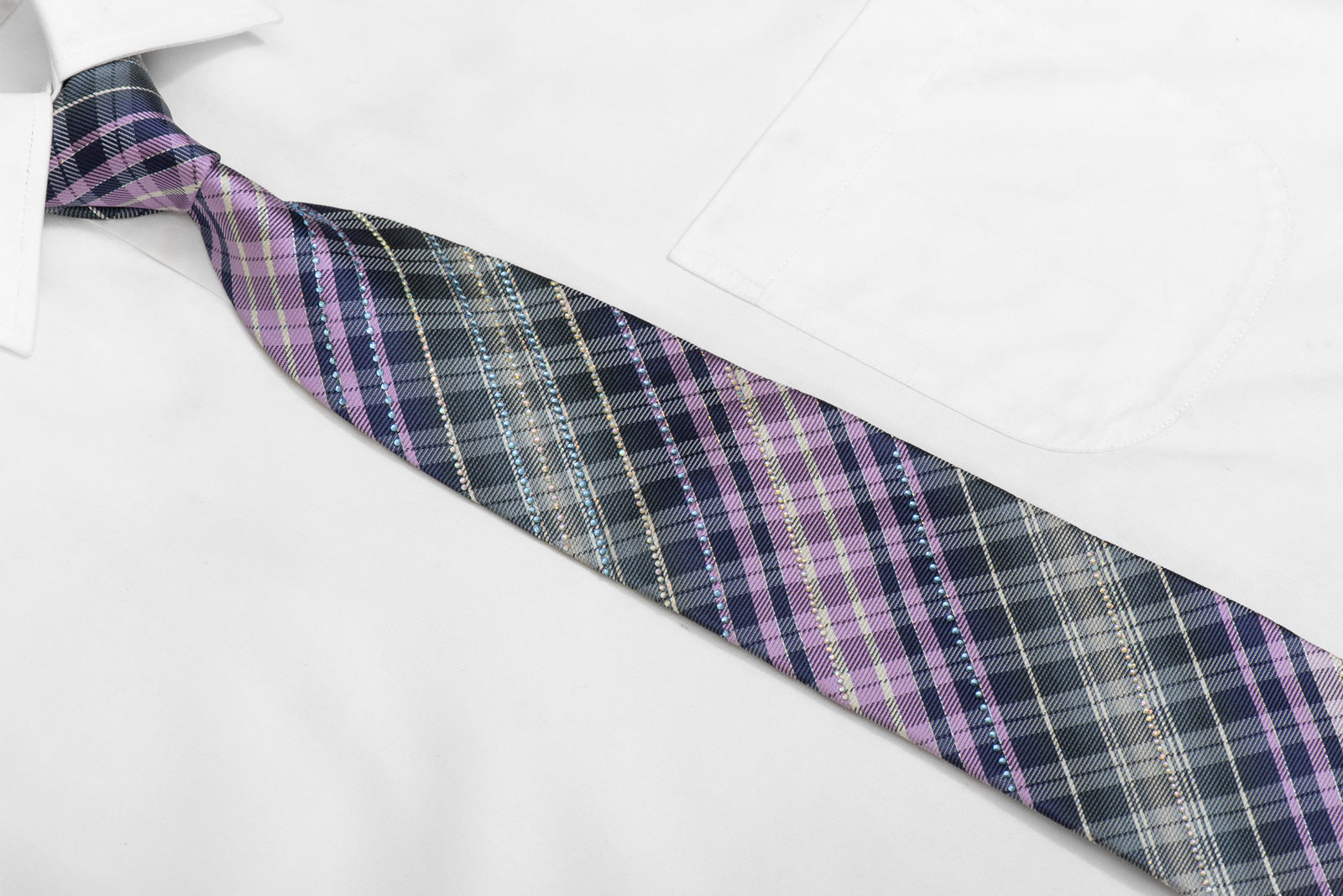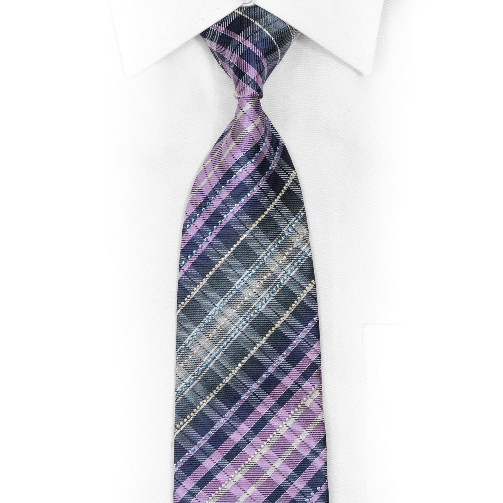 Material - SilkDesign - PlaidColor - Navy, Mauve, SilverLength - Classic (48 in.-60 in.)(145cm-153 cm)Width - Classic (3 1/2 in)( 9cm )Special Features - Rhinestones, Silver Sparkles