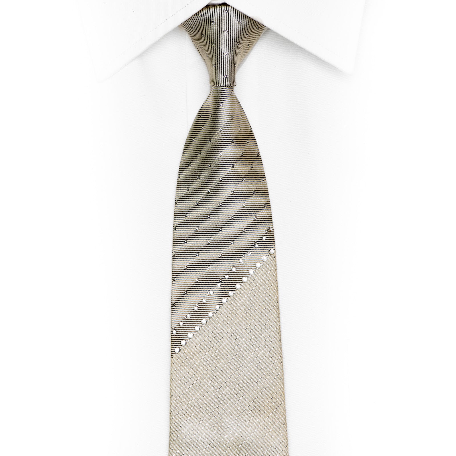 Material - SilkDesign - StripedColor - SilverLength - Classic (57 in.-60 in.)(145 cm-153 cm)Width - Skinny (3 in.)Special Features - Rhinestones, Silver Sparkles