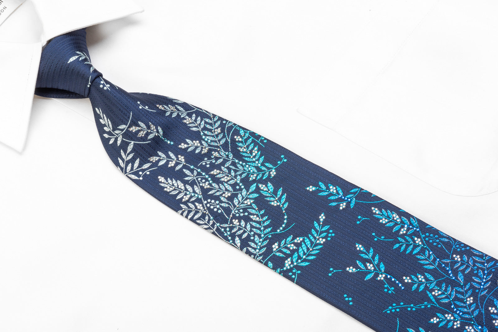 Material - SilkDesign - FloralColor - BlueLength - Classic (57 in.-60 in.)(145 cm-153 cm)Width - Classic (3 1/4 in.-3 3/4 in.)(8 cm-9.5 cm)Special Features - Blue Rhinestones, Blue Studs, Crystal Rhinestones, Silver Sparkles