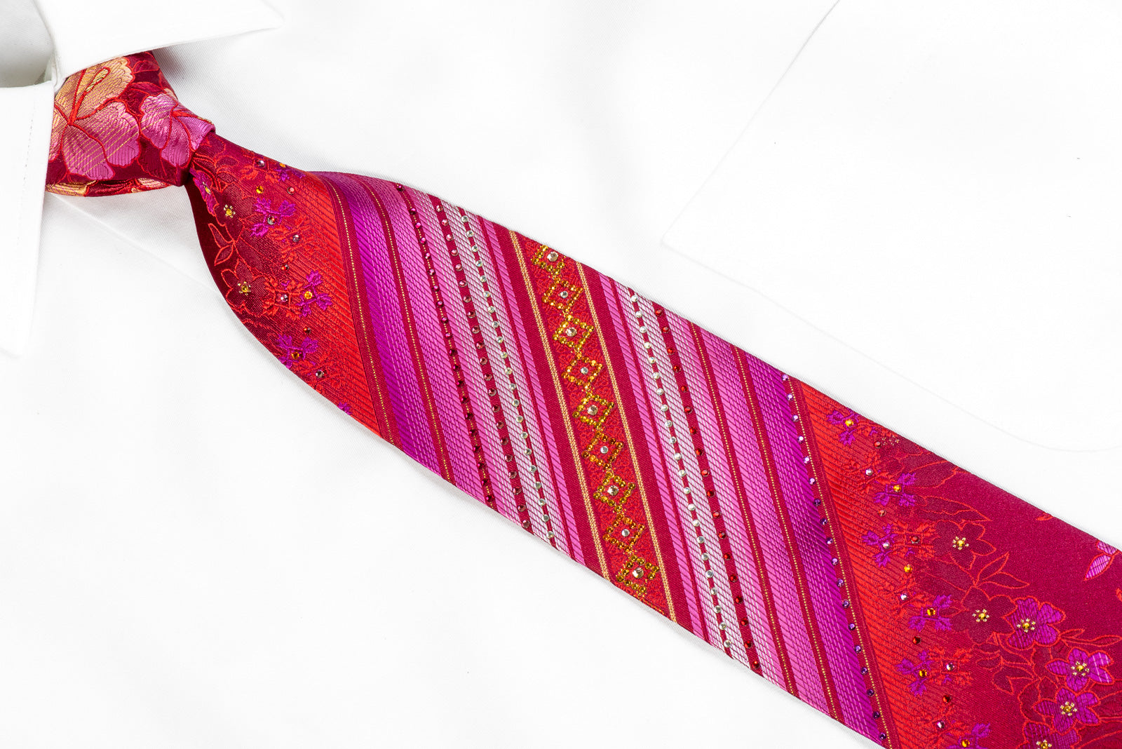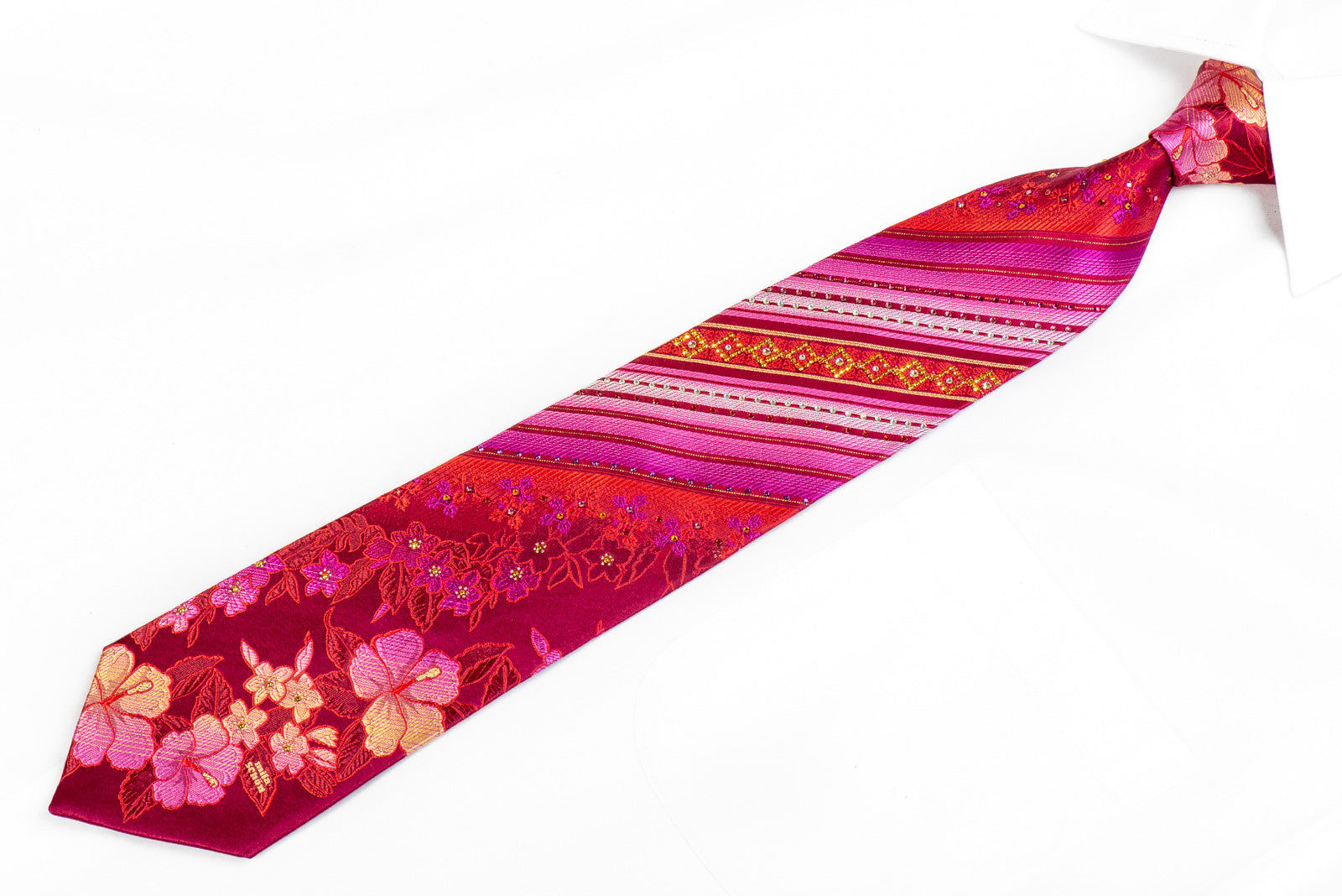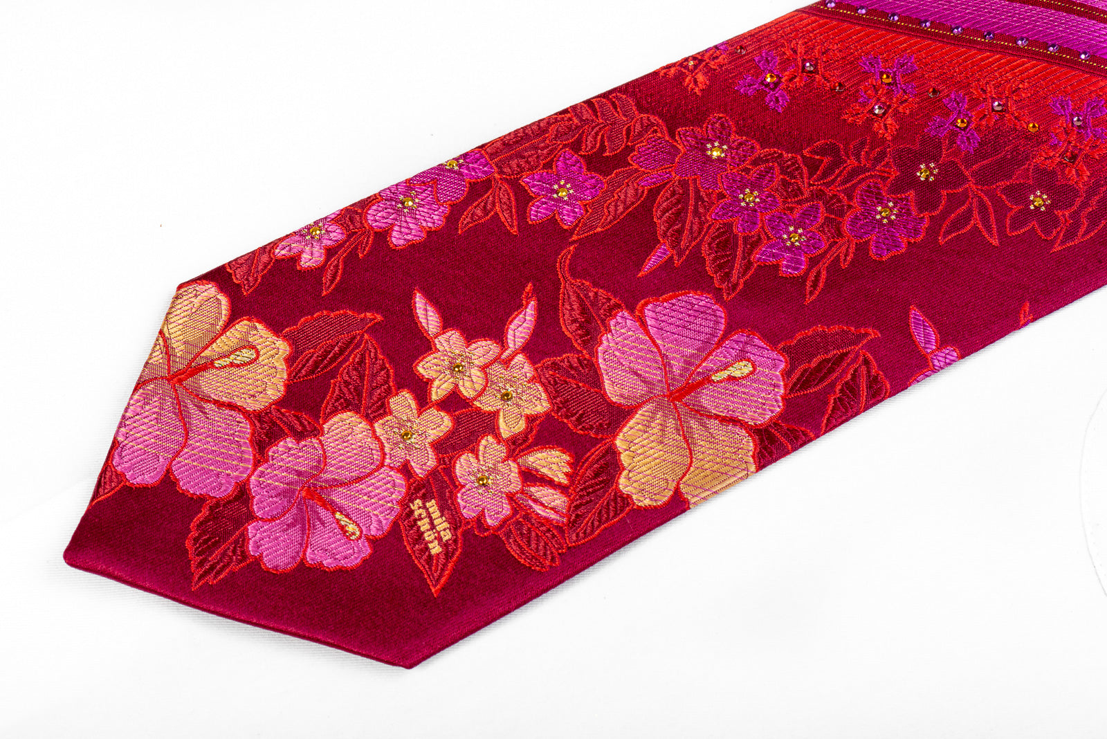 Material - SilkDesign - FloralColor - Burgundy, Purple, RedLength - Classic (57 in.-60 in.)(145 cm-153 cm)Width - Classic (3 1/4 in.-3 3/4 in.)(8 cm-9.5 cm)Special Features - Crystal Rhinestones, Gold Studs, Orange Rhinestones, Purple Rhinestones, Silver Sparkles