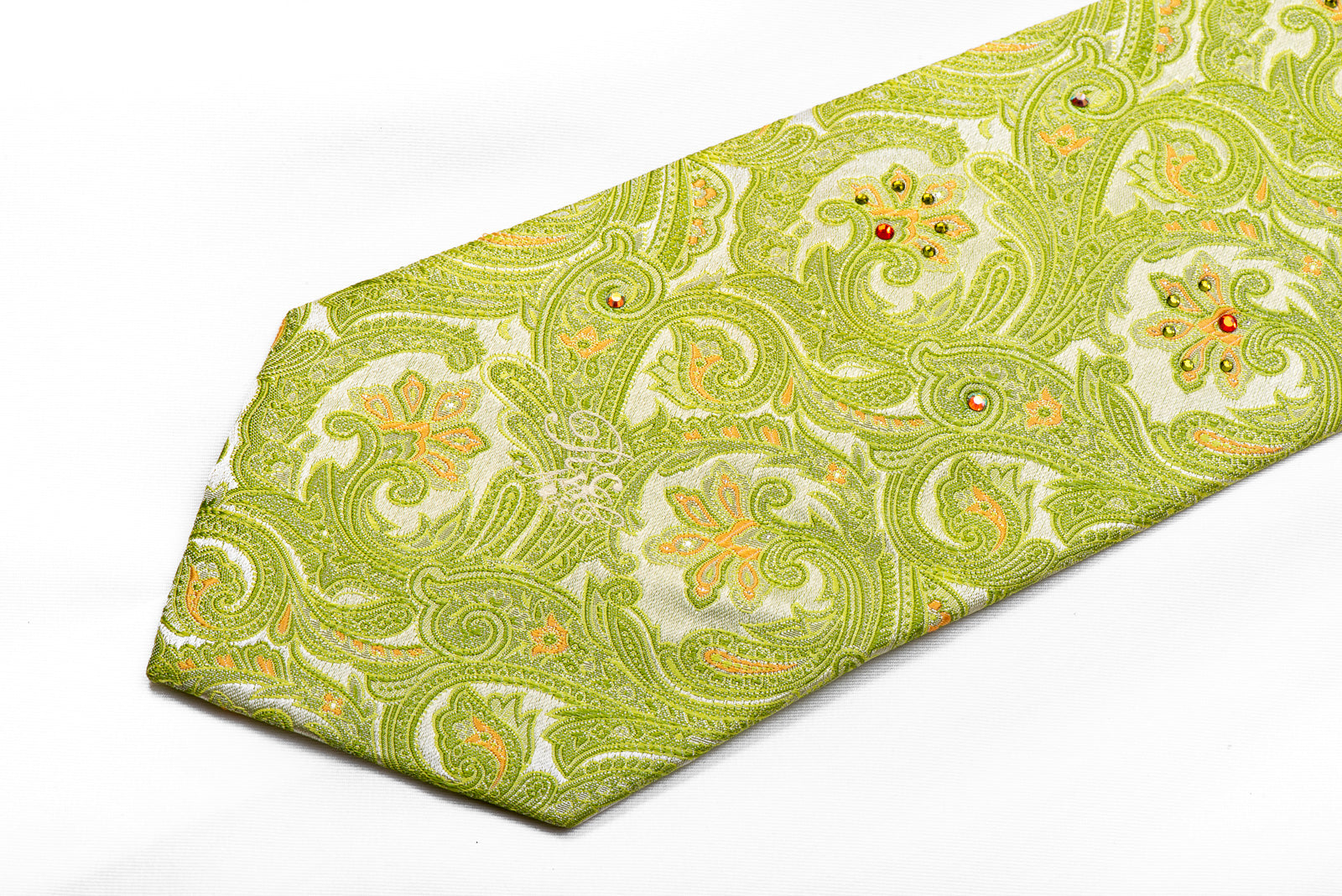 Nina Ricci Rhinestone Tie Green Paisley On Silver With