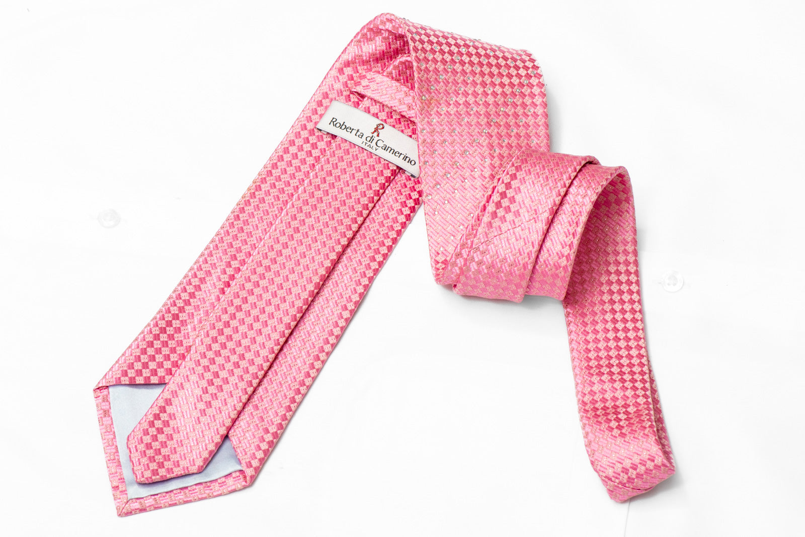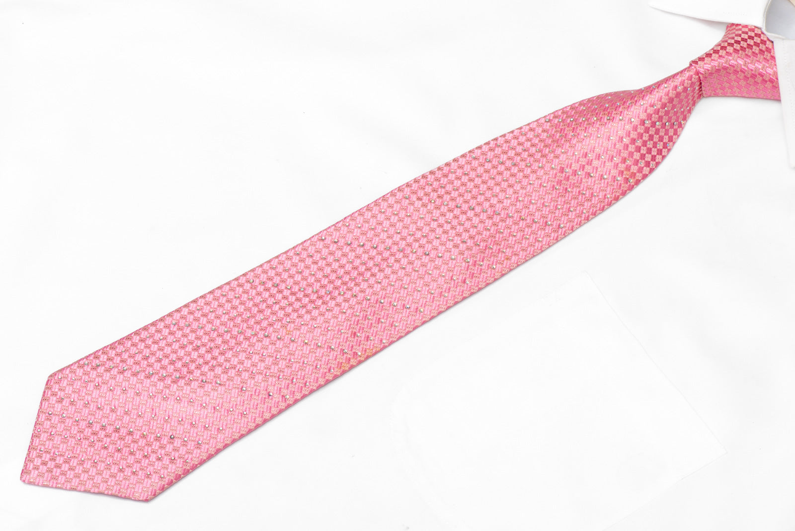 Pink Checkered Rhinestone Silk Necktie With Pink Sparkles