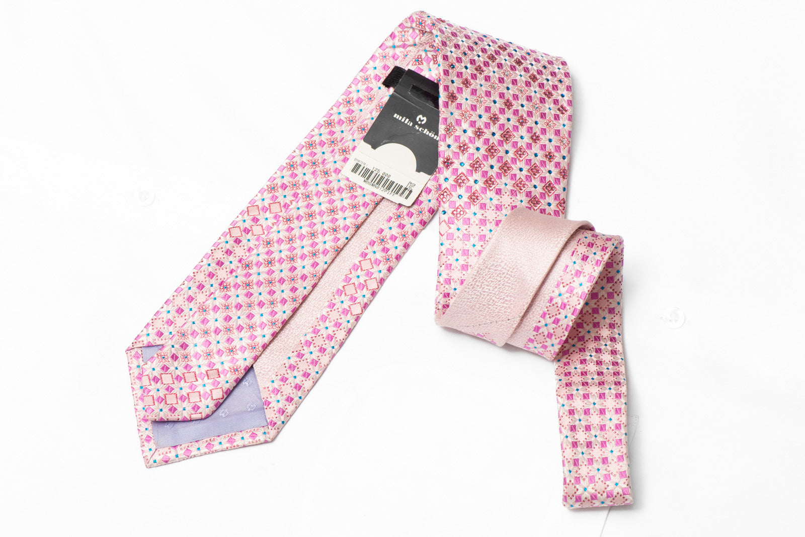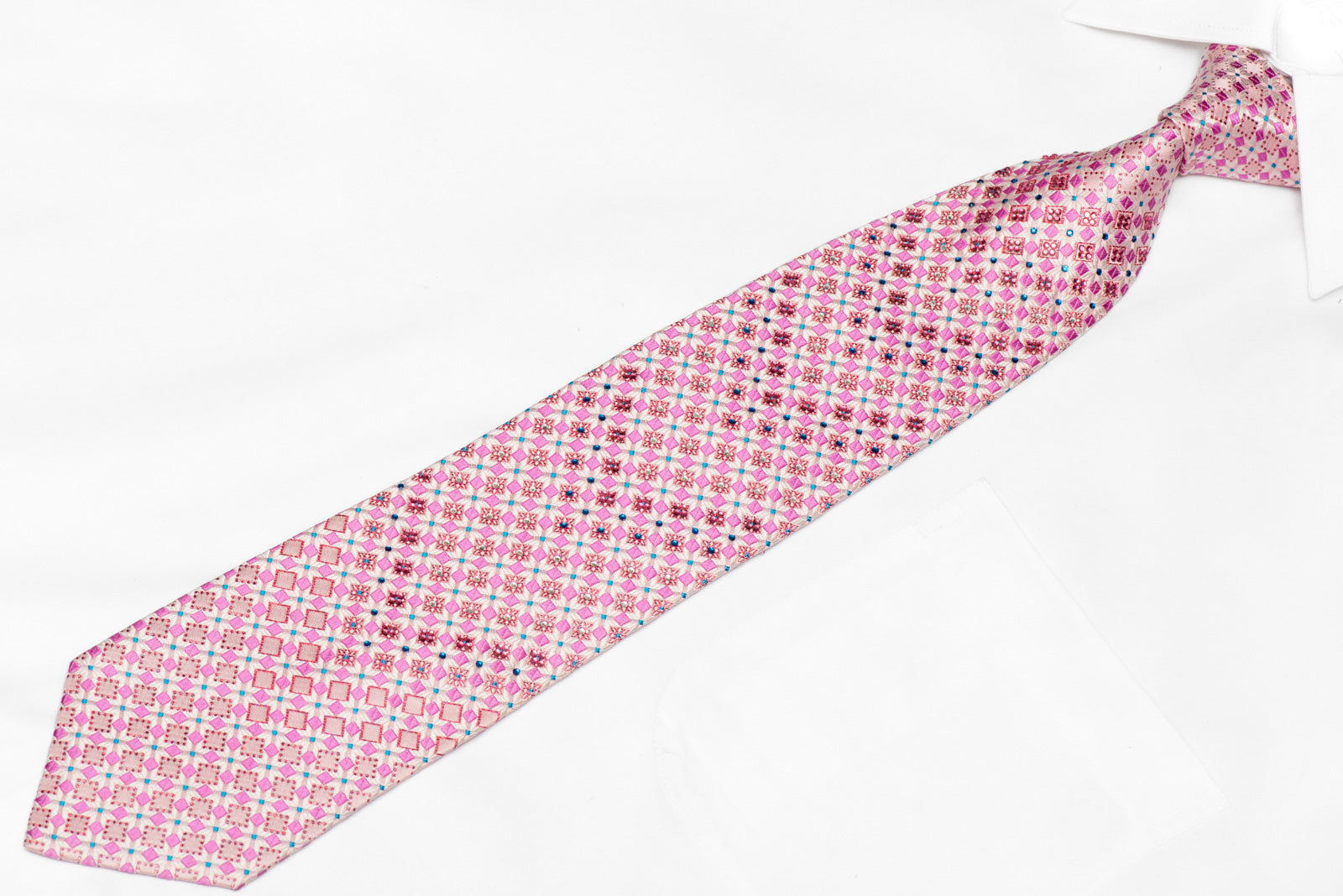 Material - SilkDesign - Geometric FloralColor - PinkLength - Classic (48 in.-60 in.)(145cm-153 cm)Width - Classic (3 1/4 in.-3 3/4 in.)(8 cm-9.5 cm)Special Features - Rhinestones, Silver Sparkles