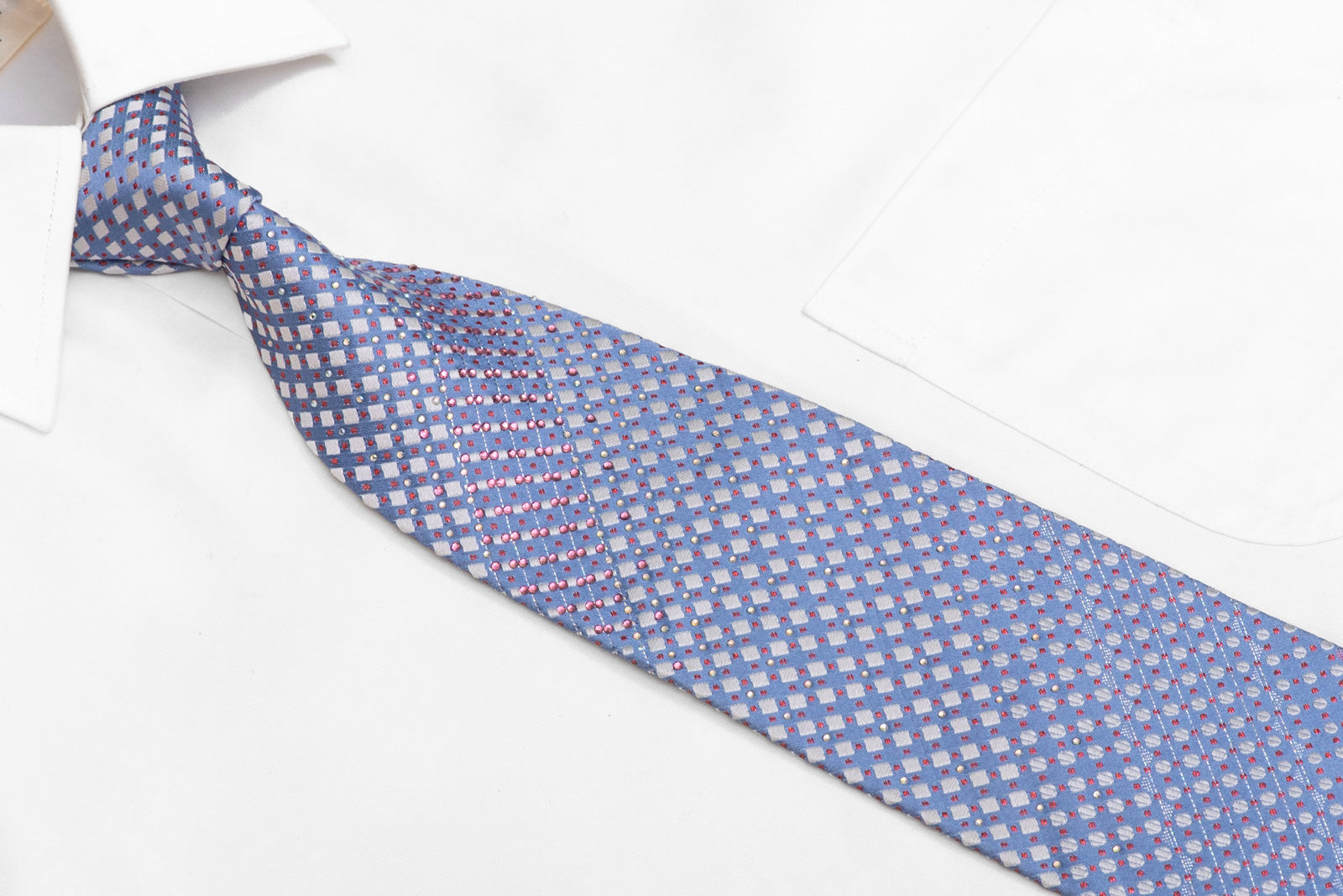 Material - SilkDesign - GeometricColor - Blue, SilverLength - Classic (48 in.-60 in.)(145cm-153 cm)Width - Classic (3 1/2 in)( 9cm )Special Features - Rhinestones, Red Sparkles
