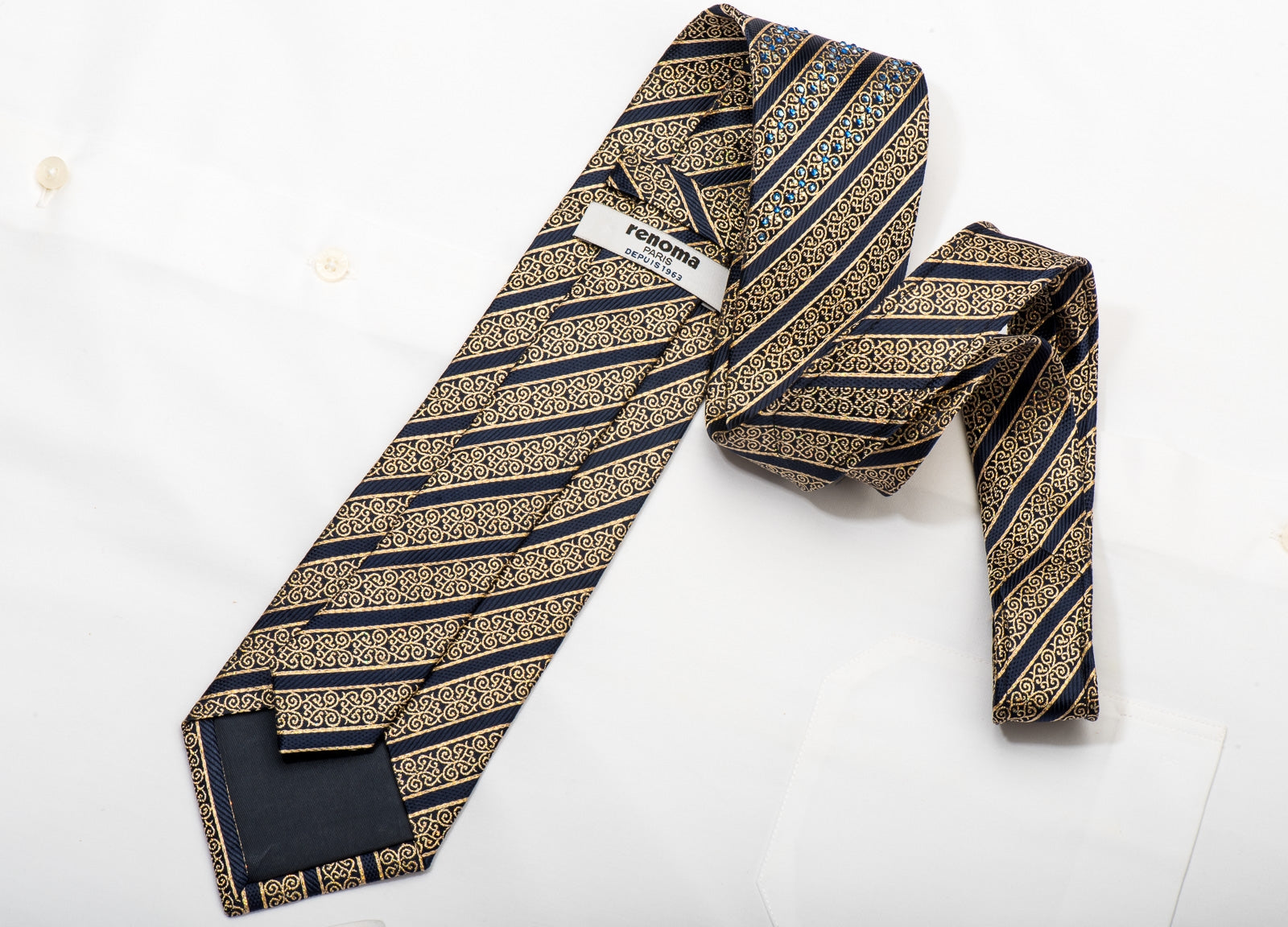 Material - SilkDesign - StripedColor - Blue, GoldLength - Classic (57 in.-60 in.)(145 cm-153 cm)Width - Classic (3 1/4 in.-3 3/4 in.)(8 cm-9.5 cm)Special Features - AB Rhinestones, Blue Rhinestones, Golden Sparkles