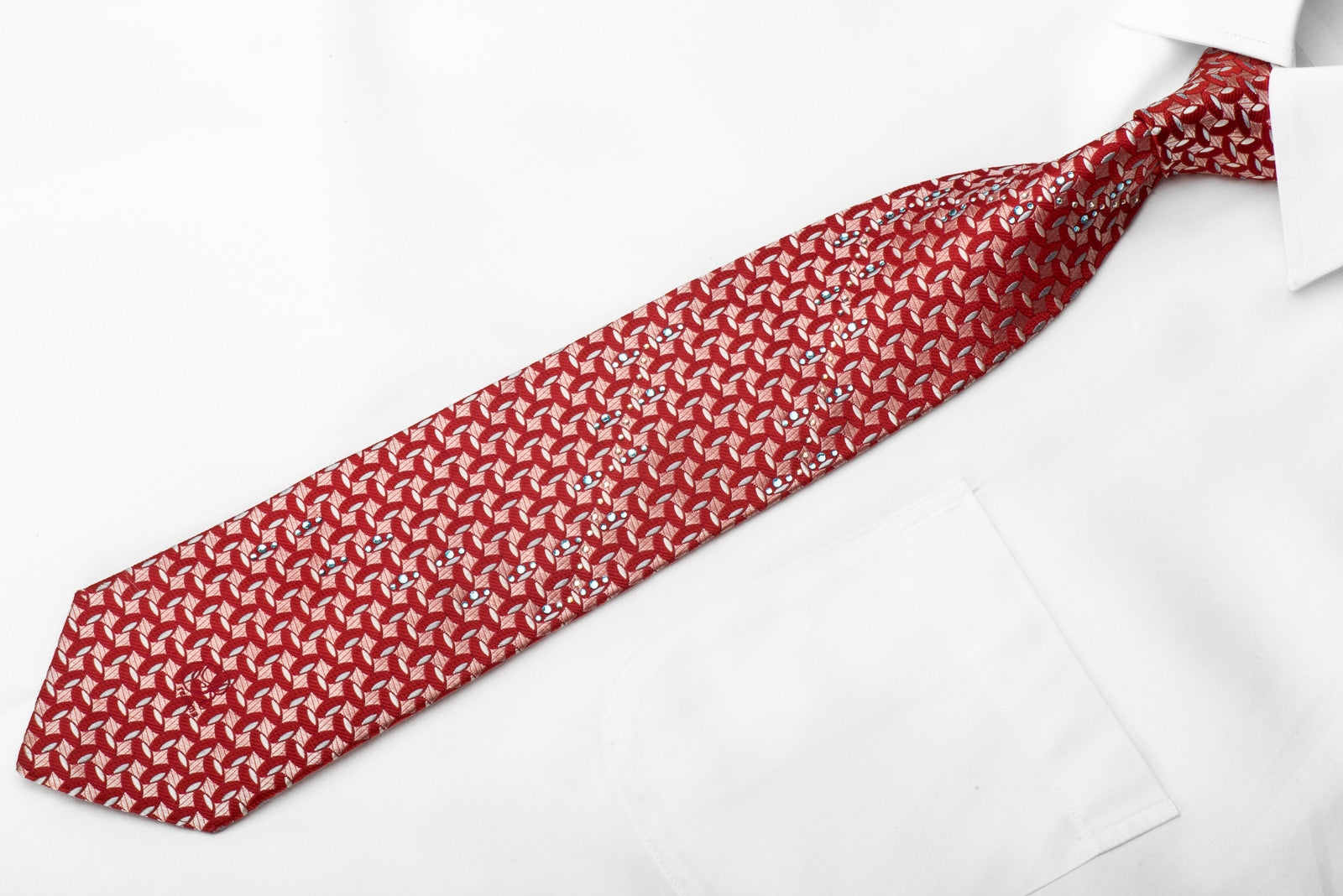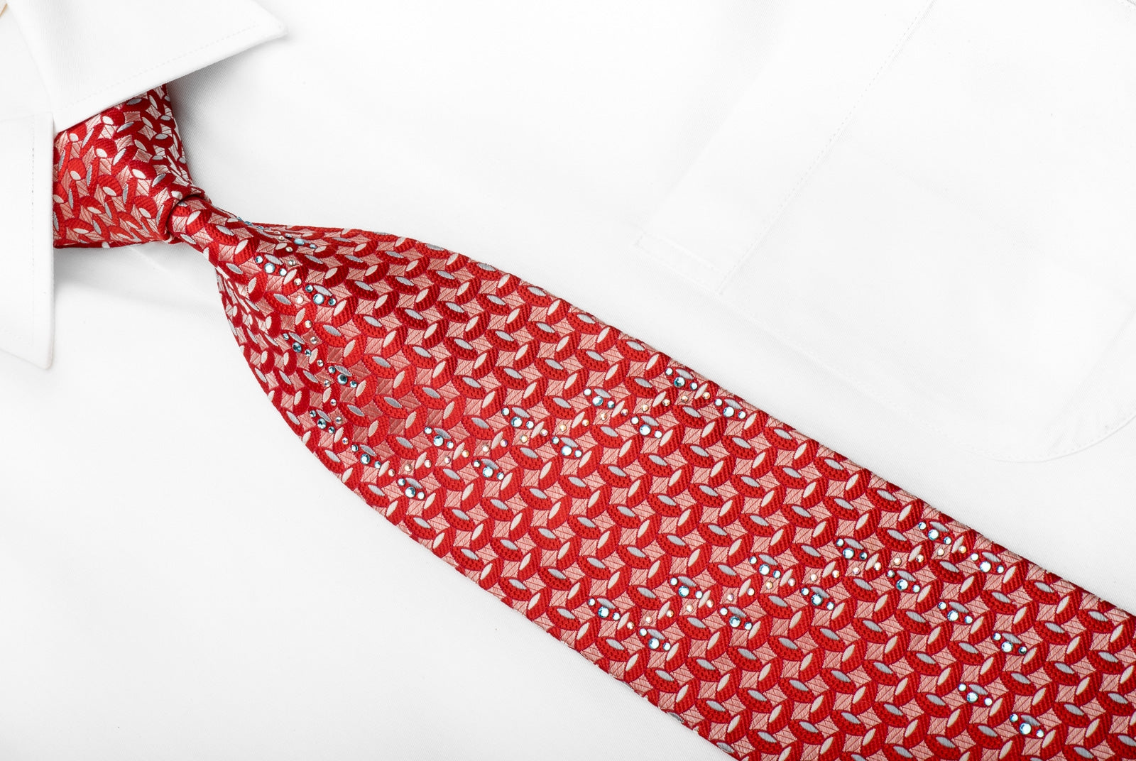 Material - SilkDesign - GeometricColor - Red, SilverLength - Classic (57 in.-60 in.)(145 cm-153 cm)Width - Classic (3 1/4 in.-3 3/4 in.)(8 cm-9.5 cm)Special Features - Blue Rhinestones, Crystal Rhinestones