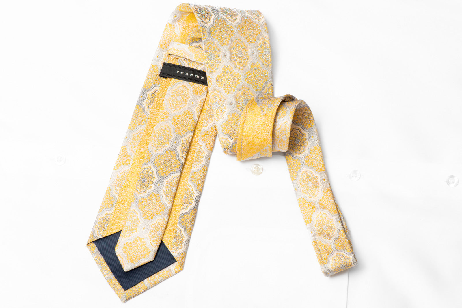 Material - SilkDesign - MarrakeshColor - Yellow, SilverLength - Classic (48 in.-60 in.)(145cm-153 cm)Width - Classic (3 1/4 in.-3 3/4 in.)(8 cm-9.5 cm)Special Features - Rhinestones, Silver Sparkles