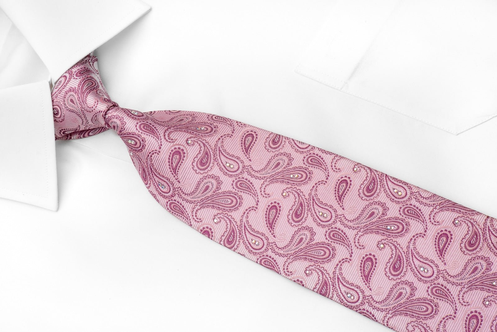 Material - Seda Design - Paisley Cor - Rosa Comprimento - Clássico (57 pol.-60 pol.)(145 cm-153 cm) Largura - Clássico (3 1/4 pol.-3 3/4 pol.)(8 cm-9,5 cm) Recursos especiais - Strass AB Fornecedor - San-Dee
