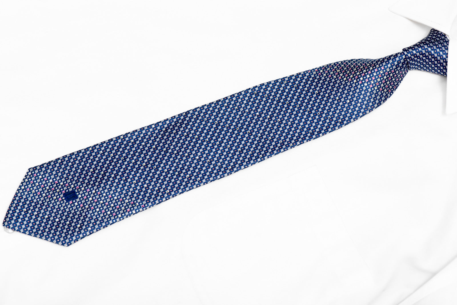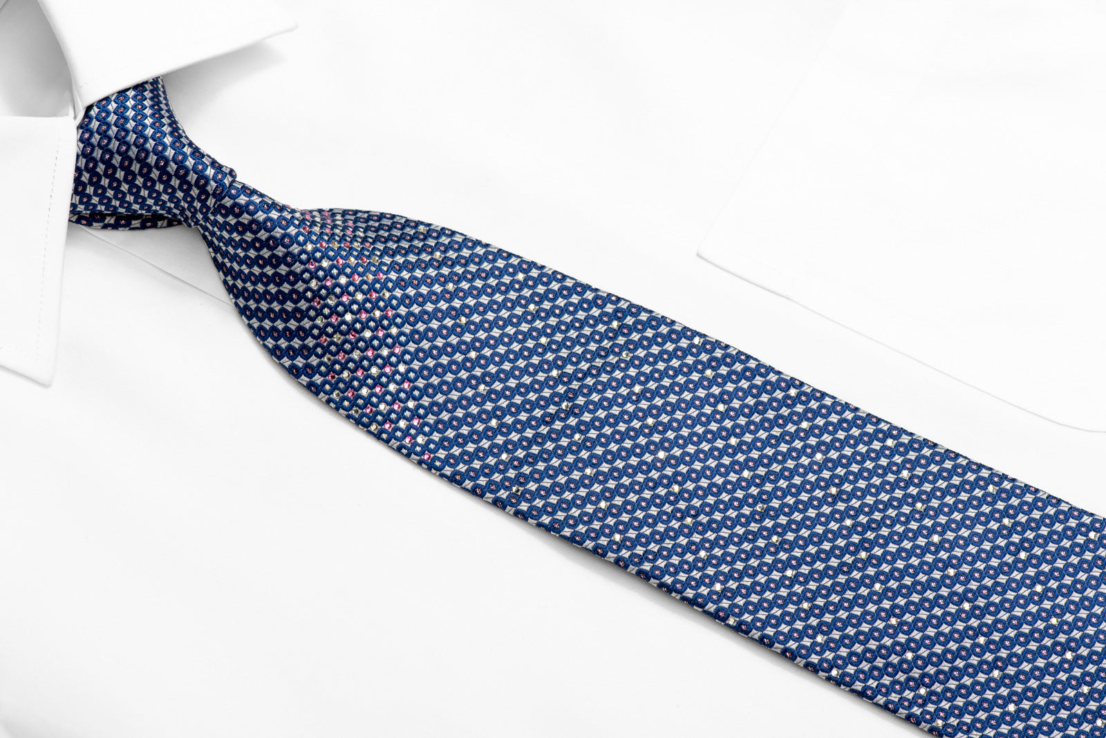 Material - Seda Design - Geométrico Cor - Azul. Prata Comprimento - Clássico (57 pol.-60 pol.)(145 cm-153 cm) Largura - Clássico (3 1/4 pol.-3 3/4 pol.)(8 cm-9,5 cm) Recursos especiais - Strass, brilhos prateados Fornecedor - Daks