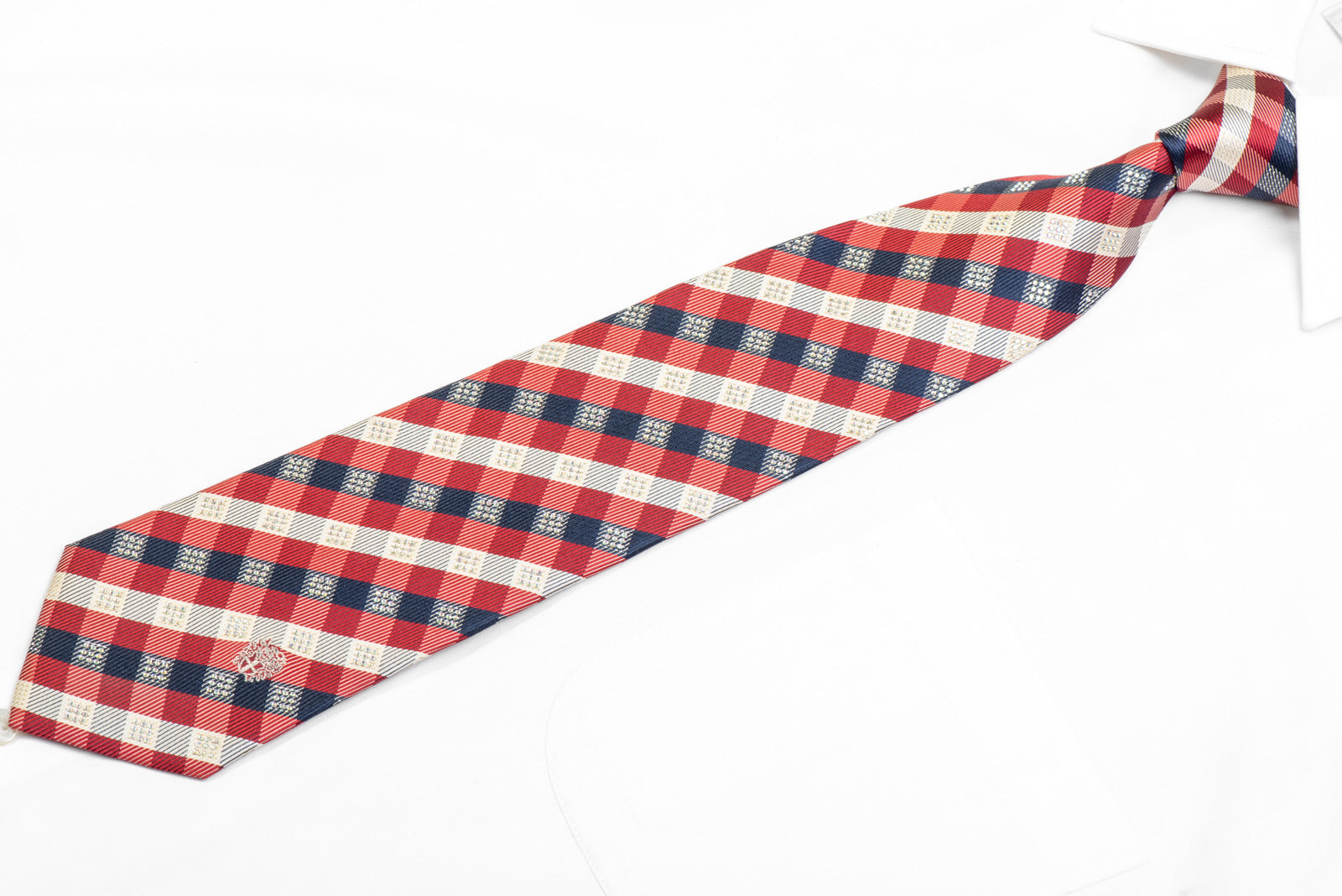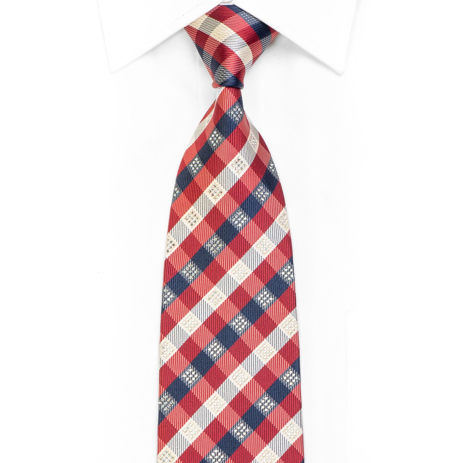 Material - Seda Design - Xadrez Cor - Borgonha, Azul, Prata Comprimento - Clássico (48 pol.-60 pol.)(145 cm-153 cm) Largura - Clássico (3 1/4 pol.) (8,5 cm) Recursos especiais - Strass, brilhos prateados Fornecedor - Daks
