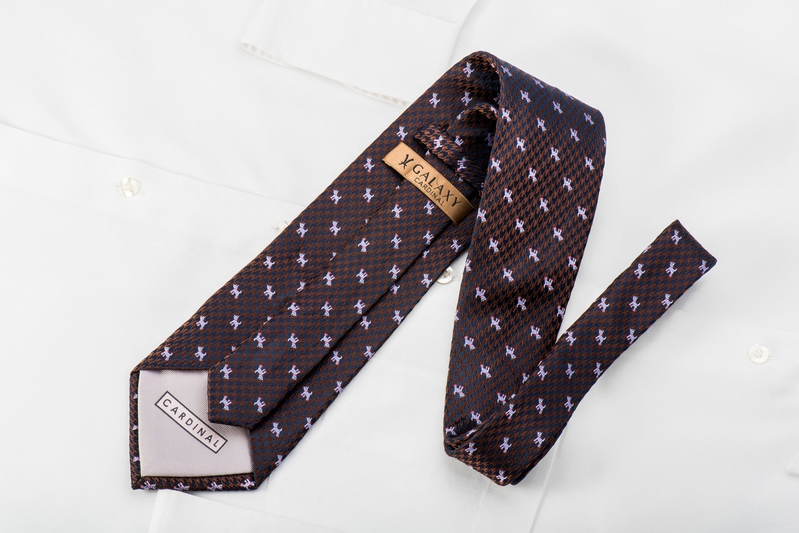 Gravata masculina bonita feita à mão da seda de melhor qualidade e projetada pela marca galaxy. Apresentando um maravilhoso desenho dog em marrom, marinha Hounds Tooth Jacquard seda tecida.