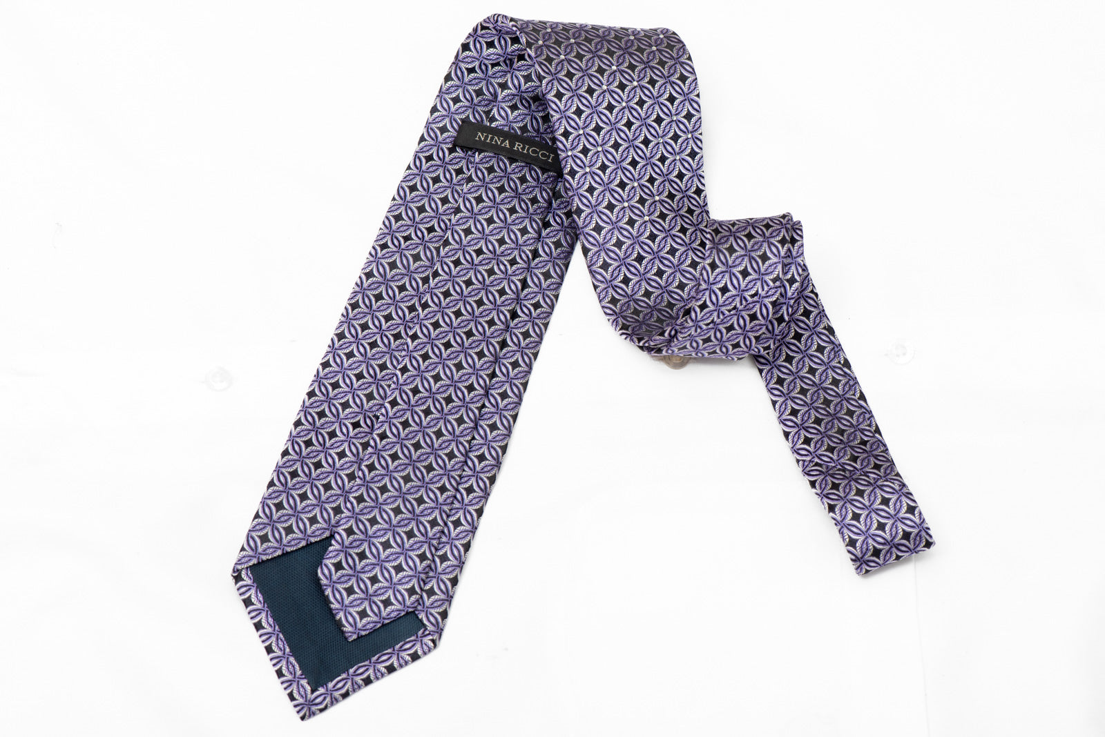 Material - Silk Design - Geometric, Circles Cor - Navy, Purple, Silver Comprimento - Classic (48 in.-60 in.)(145cm-153 cm) Largura - Classic (3 1/4 in.-3 3/4 in.)(8 cm-9.5 cm) Recursos especiais - Rhinestones Fornecedor - Nina Ricci