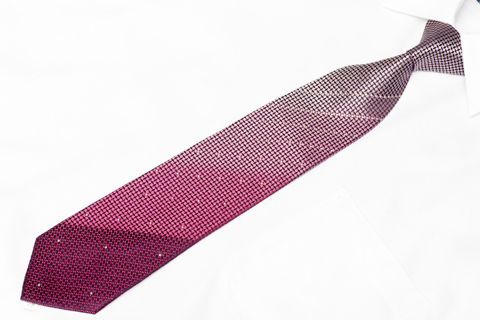Add some sparkle and shine to your formal look with this Geometric On Violet Silk Tie. Adorned with sparkling rhinestones and accented with a vivid purple tone, this tie is sure to make a statement.