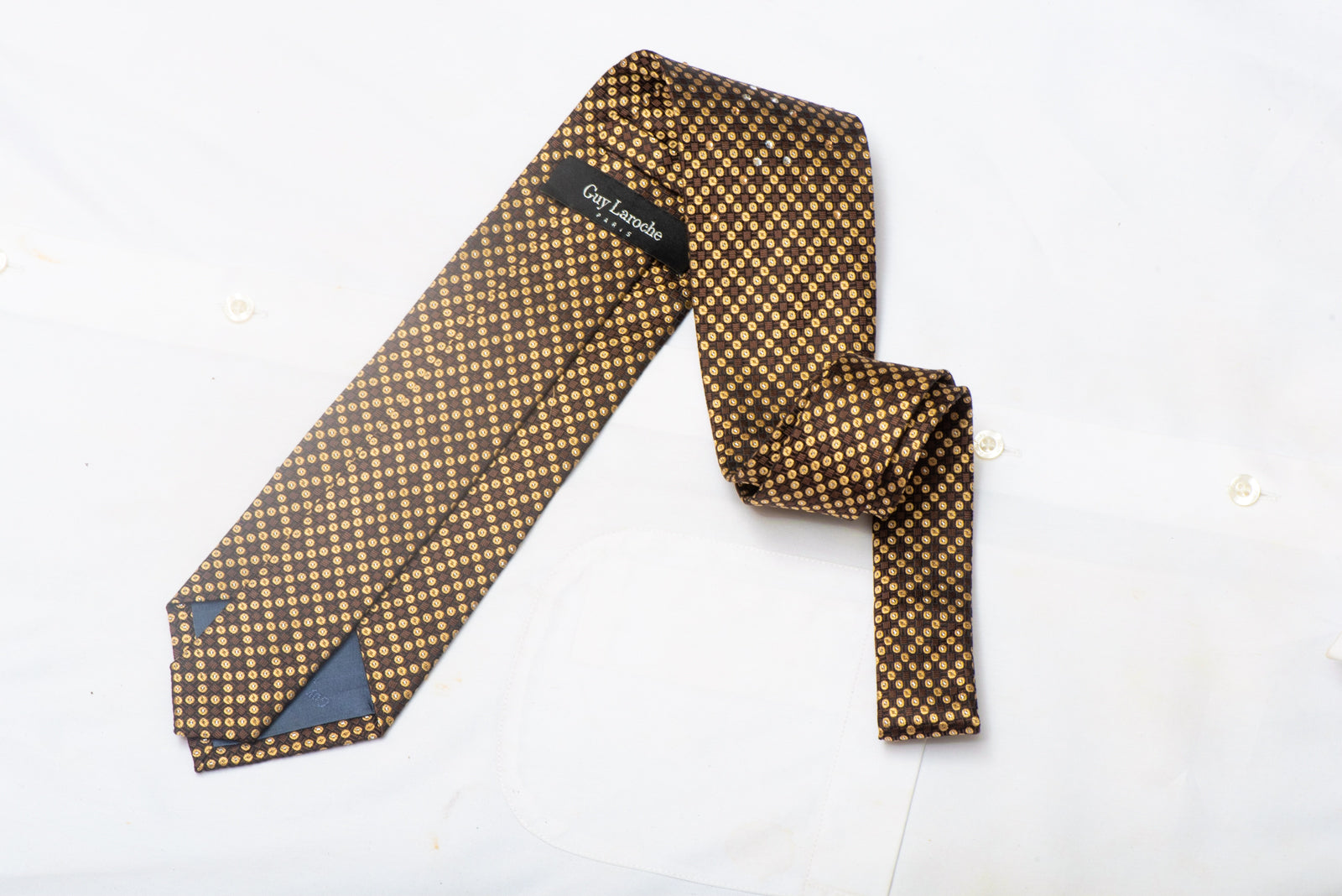 Material - Silk Design - Geometric, Dots Cor - Black, Brown, Gold Comprimento - Classic (48 in.-60 in.)(145cm-153 cm) Largura - Classic (3 1/4 in)( 8.5cm ) Recursos especiais - Rhinestones, Silver Sparkles Fornecedor - Guy Laroche