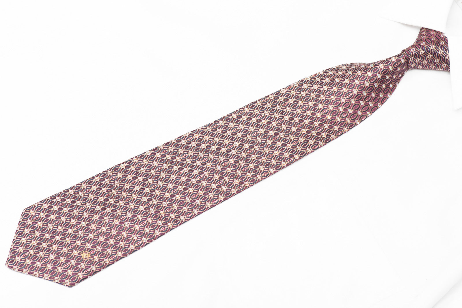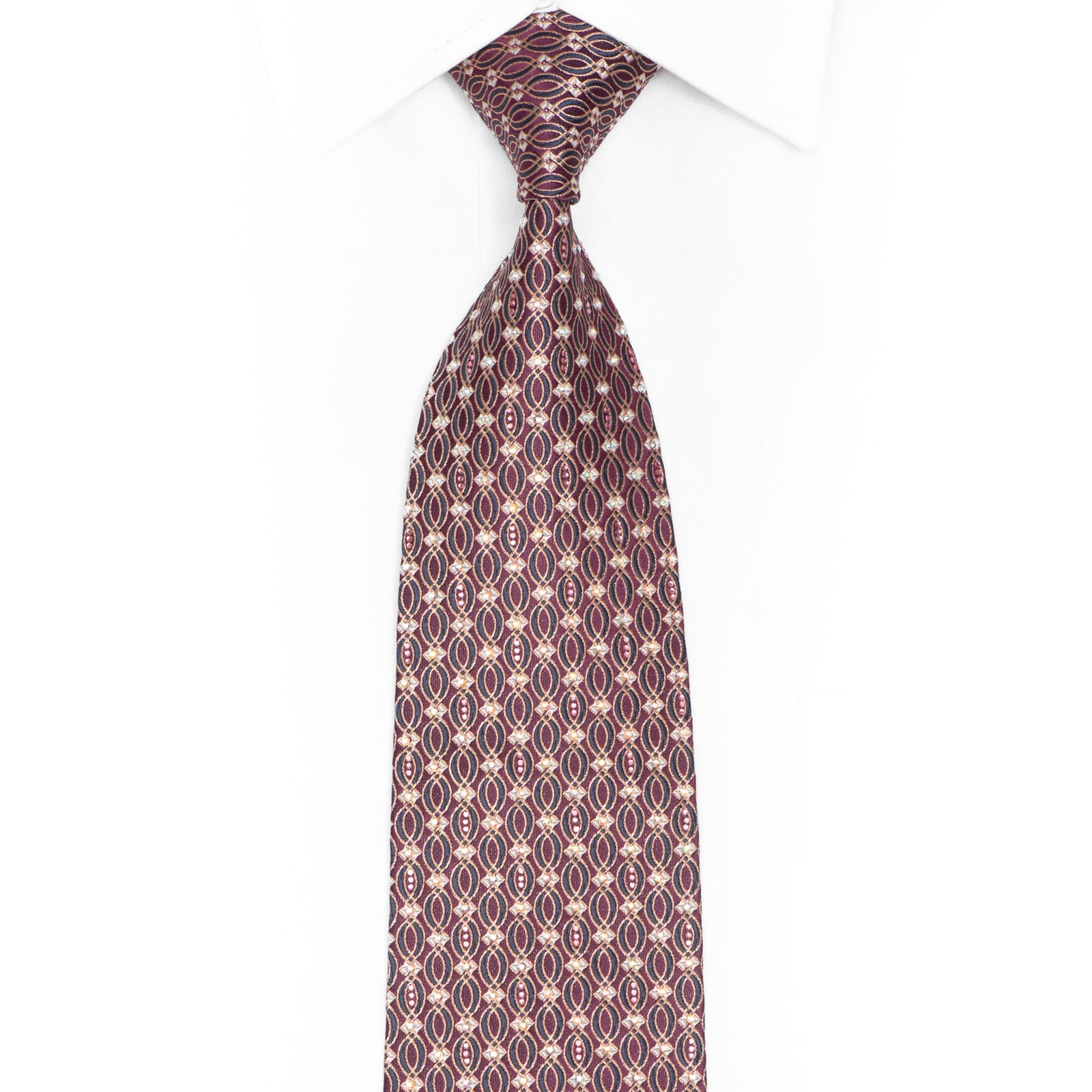 Enfatize seu estilo sofisticado com nosso design de ondas douradas em uma gravata de seda com strass cor de vinho, acentuada com brilhos prateados.