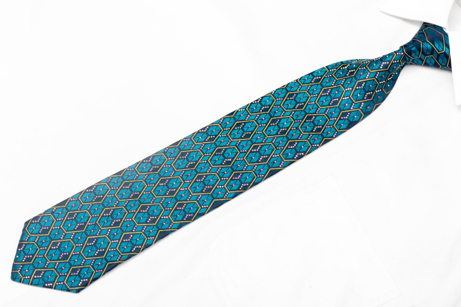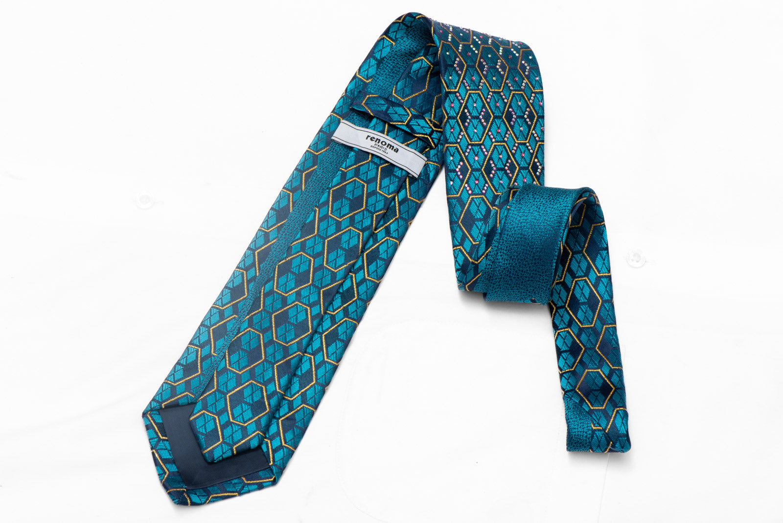 Material - Silk Design - Geometric Cor - Blue, Teal, Gold Comprimento - Classic (48 in.-60 in.)(145cm-153 cm) Largura - Classic (3 1/4 in.-3 3/4 in.)(8 cm-9.5 cm) Recursos especiais - Rhinestones Fornecedor - Renoma